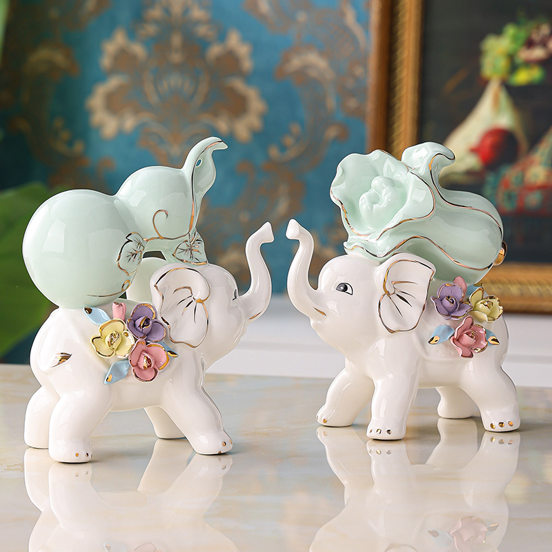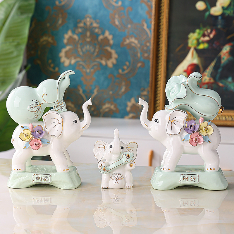 摆件大象葫芦玉白菜陶瓷客厅电视柜酒柜招财装饰品乔迁新居礼品