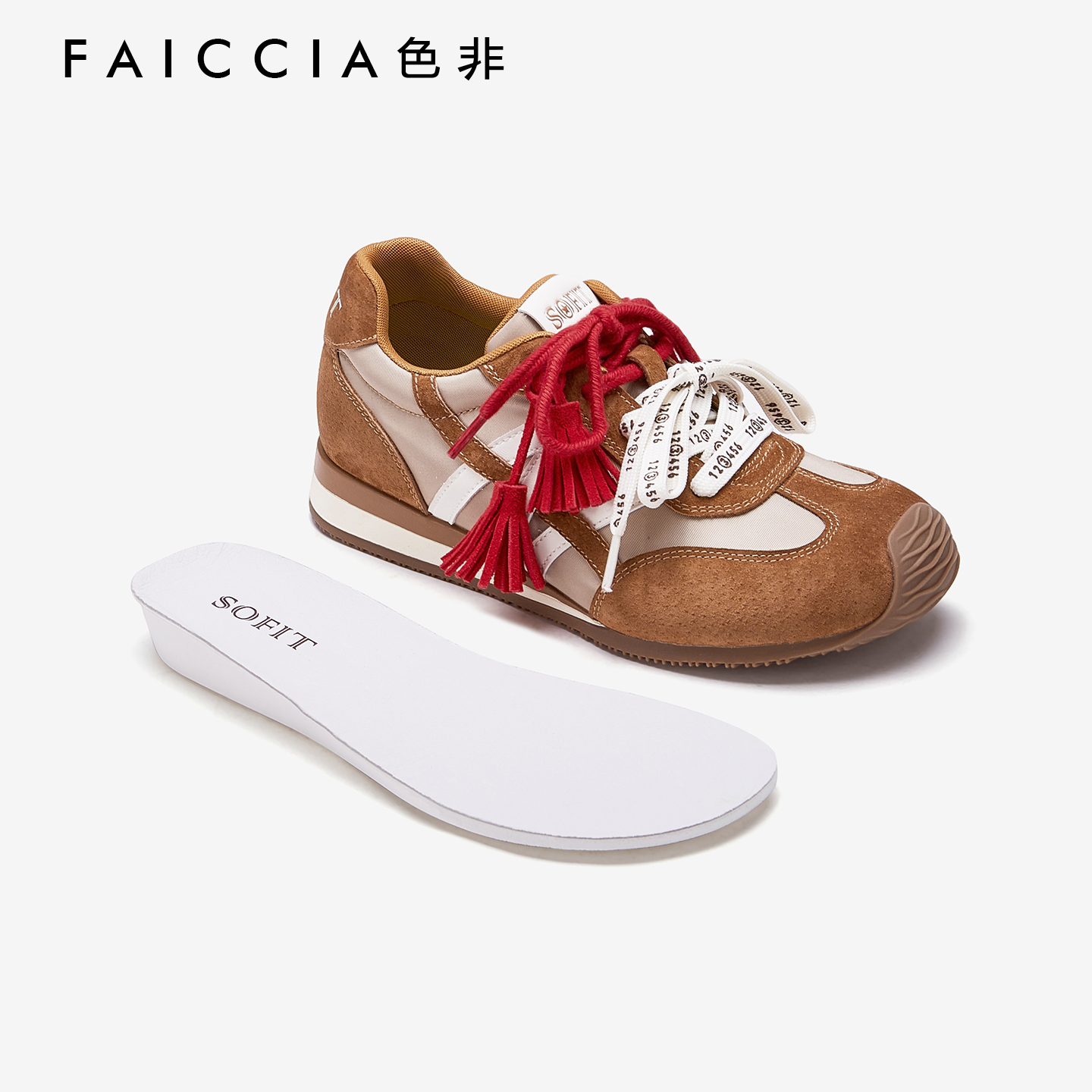 色非真皮内增高复古德训鞋女2025年秋季新款洋气拼色双鞋带休闲鞋