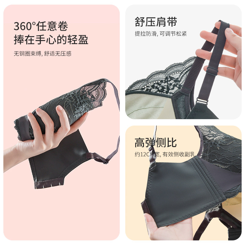 爱戴小胸聚拢无钢圈内衣女蚕丝性感蕾丝平胸专用无痕美背外扩文胸