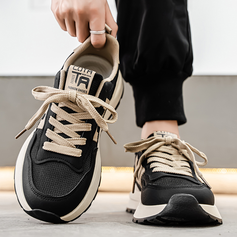 男鞋秋季网面透气潮流百搭跑步运动鞋青少年厚底轻便黑色老爹潮鞋