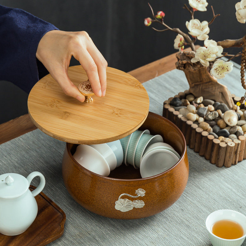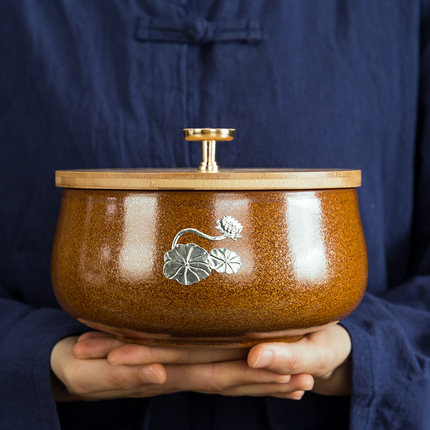 茶洗琥珀棕茶渣缸日式陶瓷建水干泡台装茶洗器皿小零食收纳容器孟