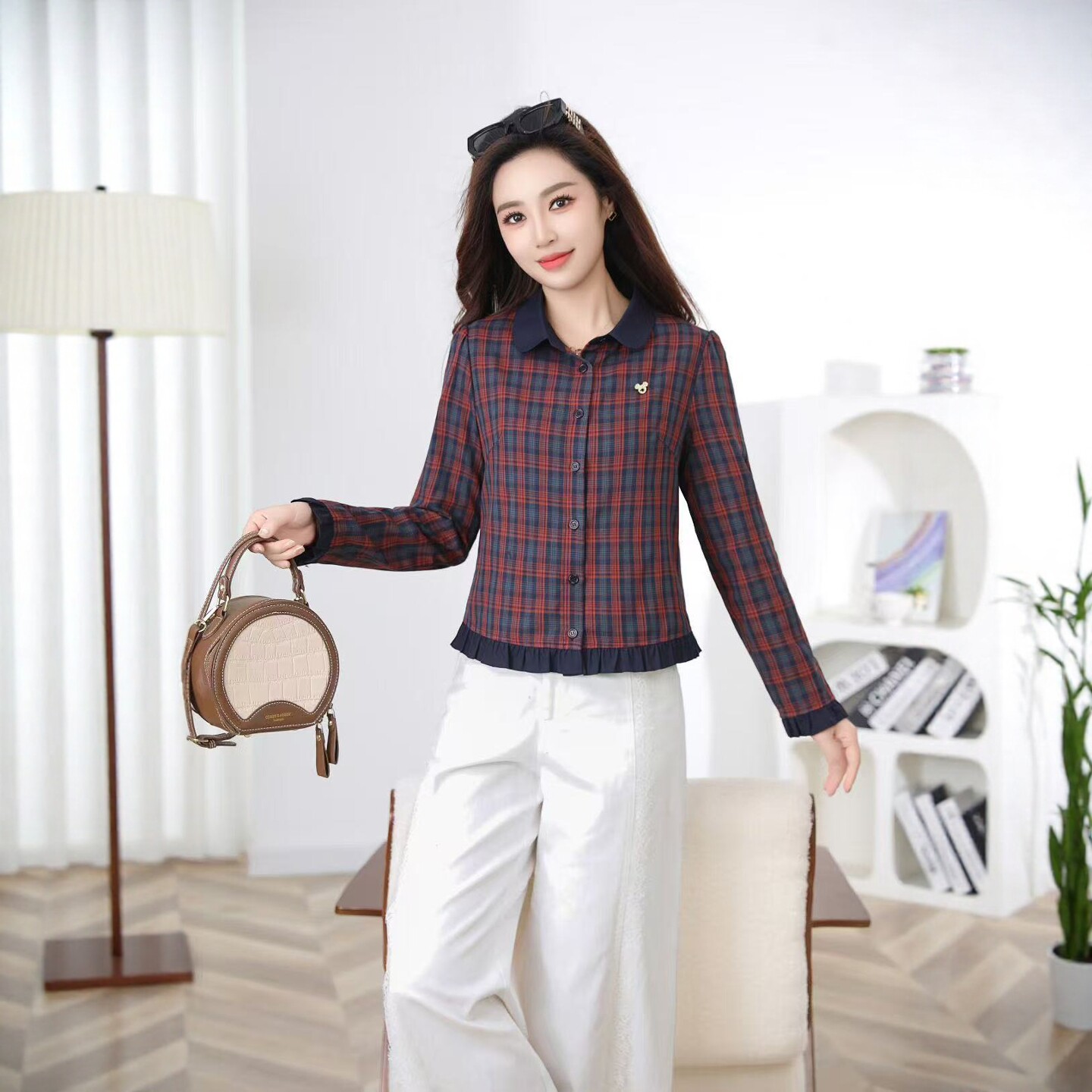 敏捷世家新款女时尚洋气减龄小衫女长袖雪纺衫2025年夏季新款衬衫