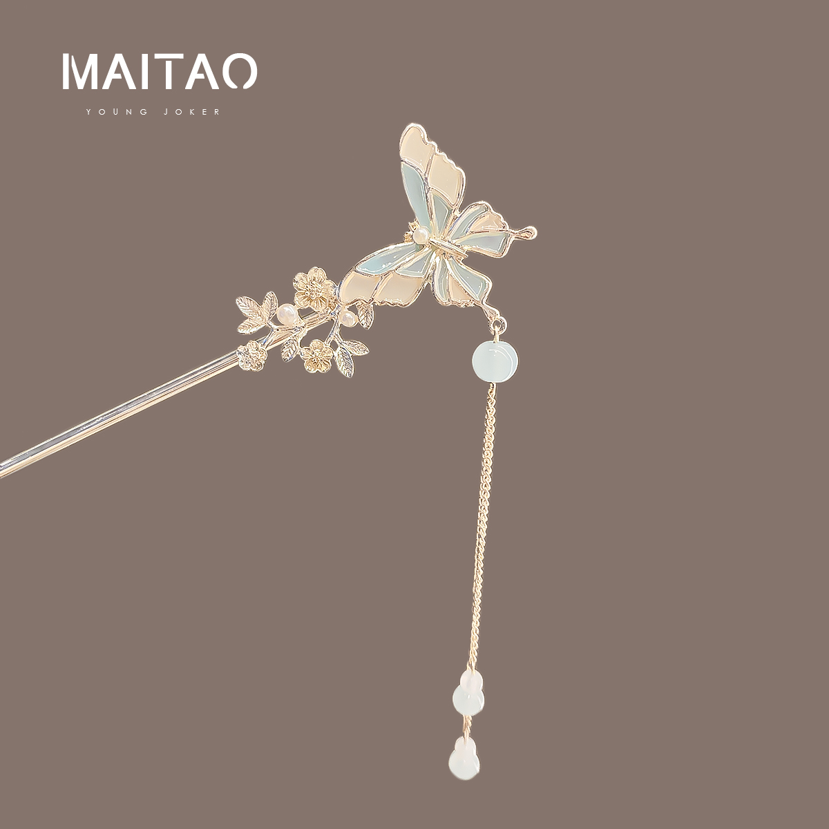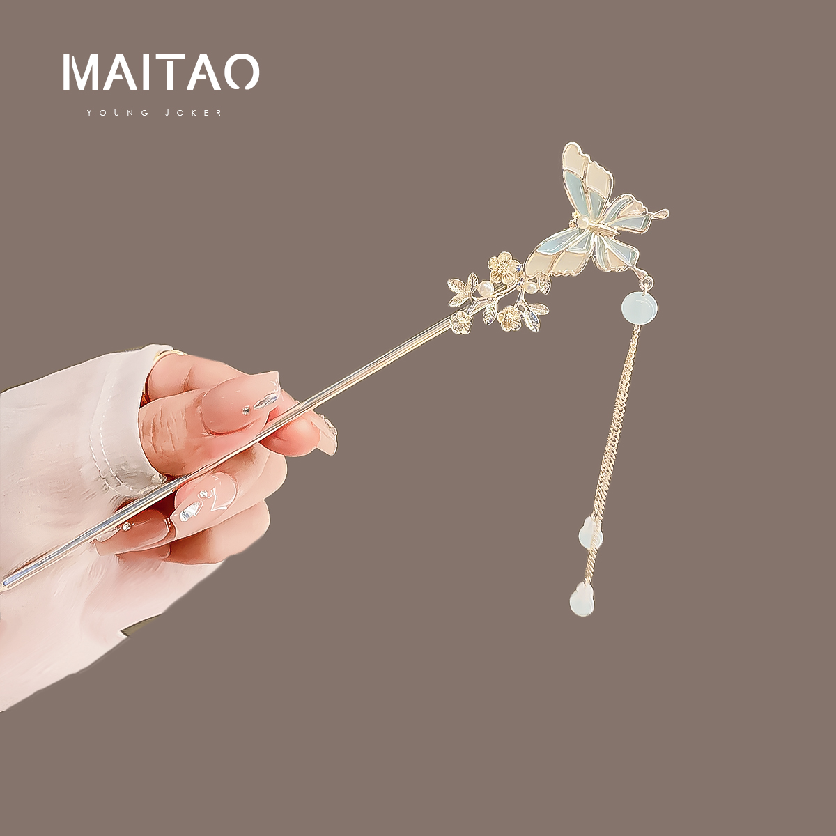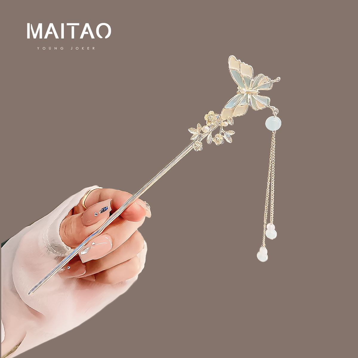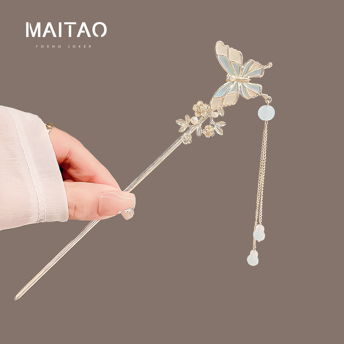 沉香晓梦蝶新中式发簪古风高级感步摇女后脑盘发神器簪子旗袍头饰