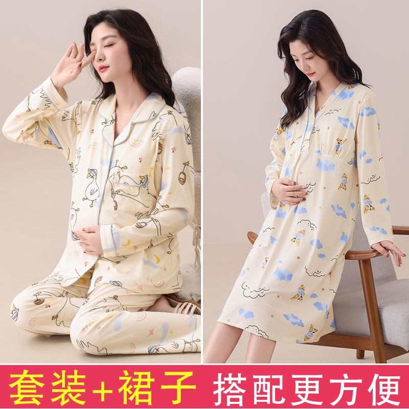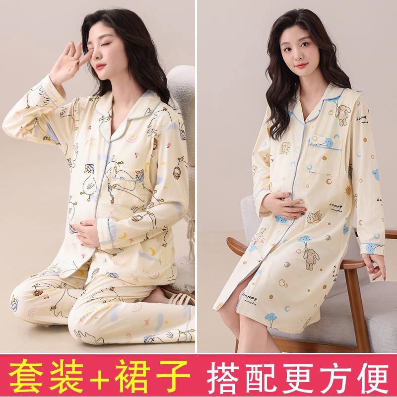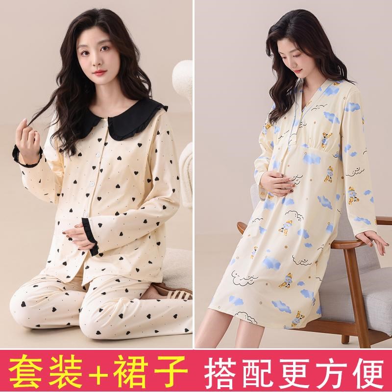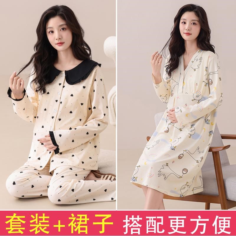 带胸垫月子服春秋季哺乳孕妇睡衣夏季薄款纯棉产后产妇喂奶3月份4