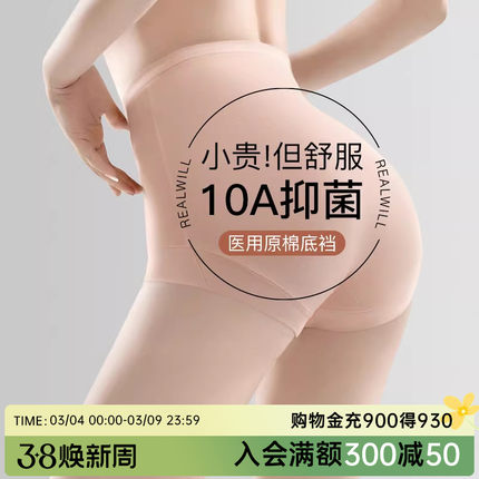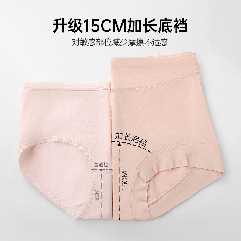 润微10A抑菌医用原棉莫代尔加长底裆3条高腰收腹无痕女士内裤女