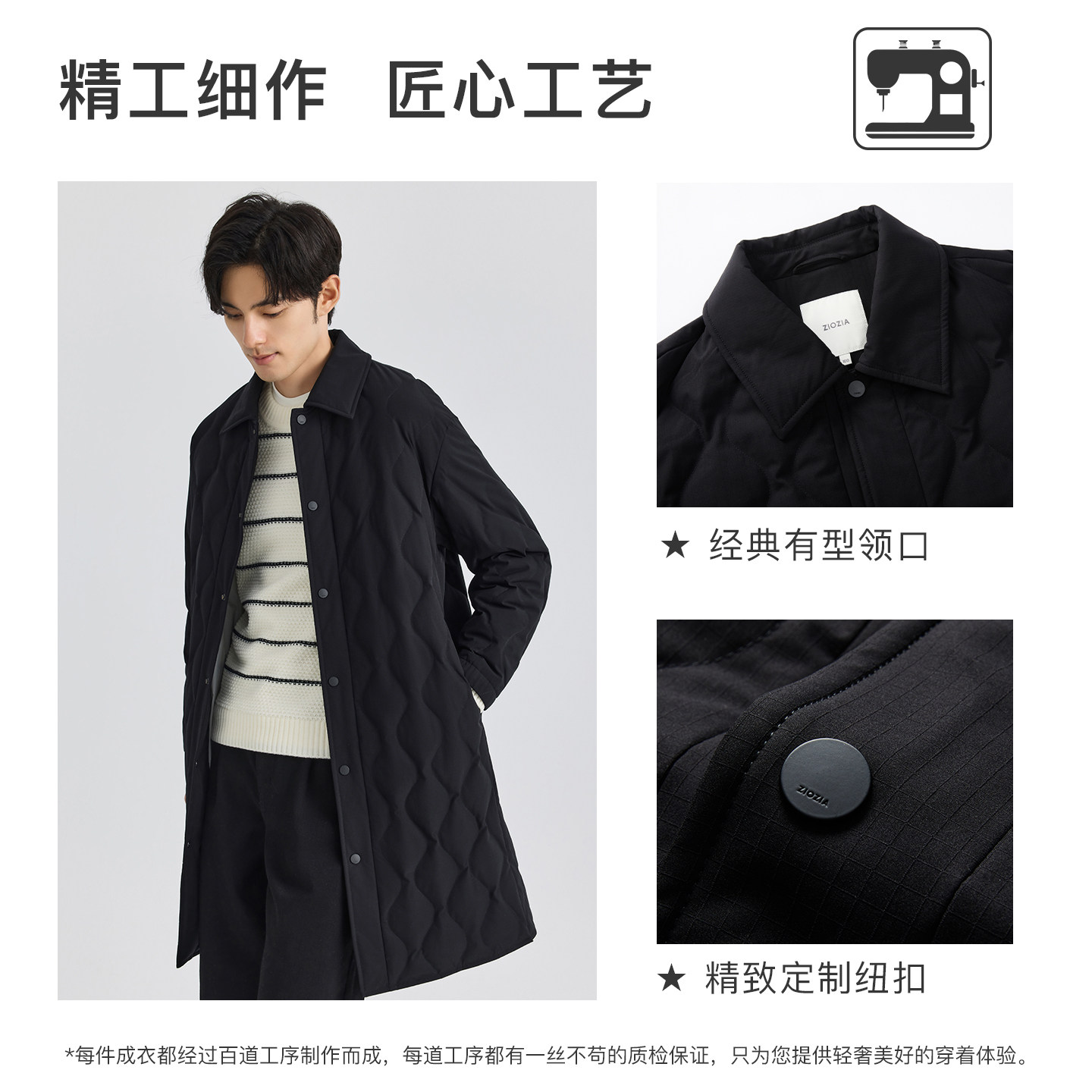 【三防面料】ZIOZIA通勤男装中长款羽绒服2025秋冬商务大衣外套