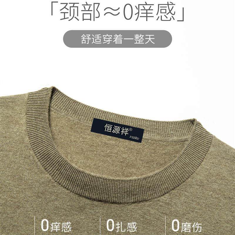 恒源祥正品100纯羊毛衫男短袖圆领针织套头打底衫上衣纯色T恤衫