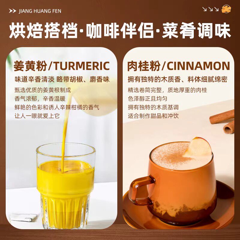 100%特级姜黄粉肉桂粉食用天然中药材烘焙咖啡专用调料官方旗舰店