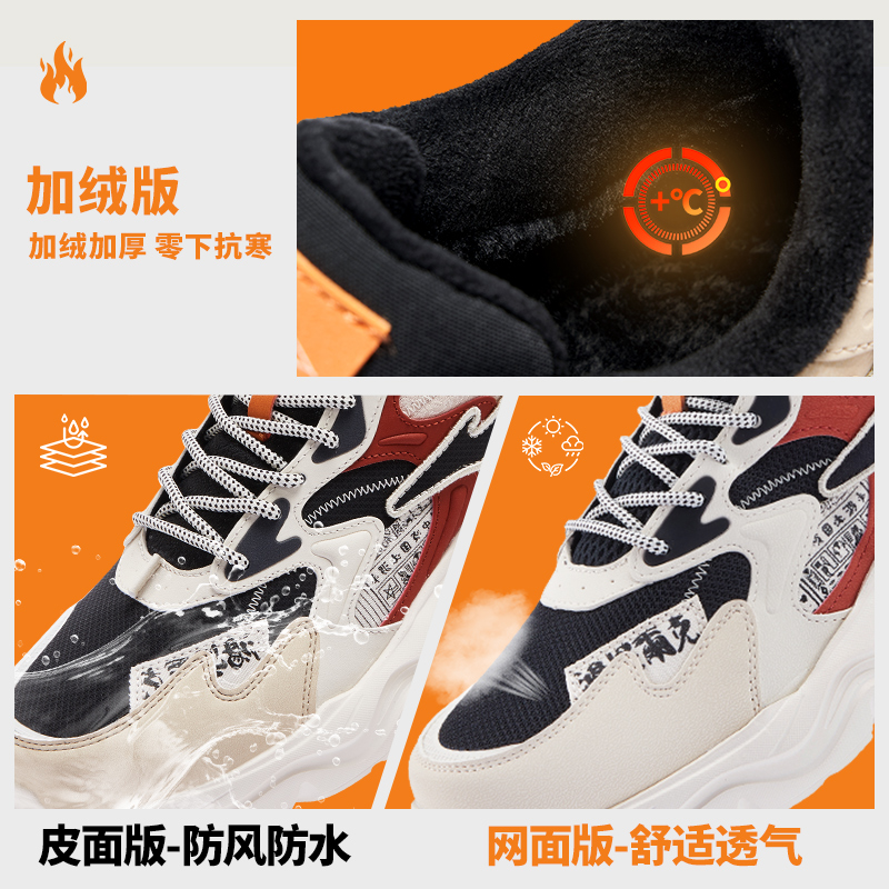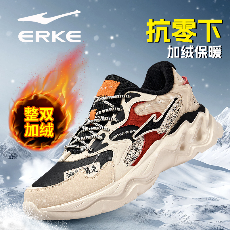 鸿星尔克运动鞋男鞋冬季新款初中生青少年加绒保暖国潮跑步鞋子