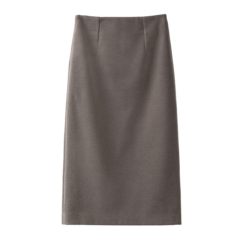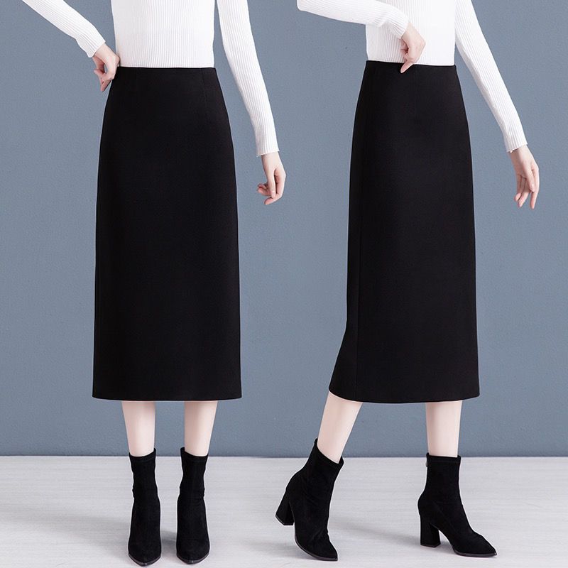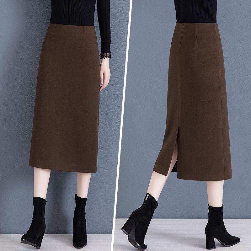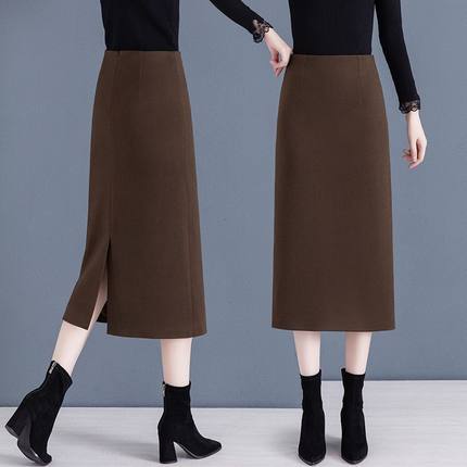 毛呢半身裙女春秋新款高级感中长款高腰开叉加厚直筒包臀一步裙子