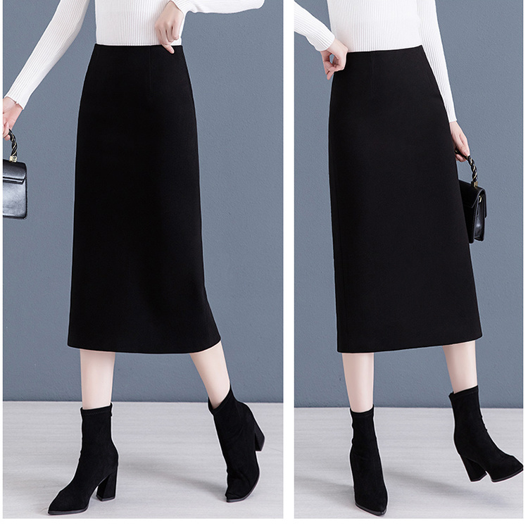 毛呢中长款包臀直筒一步裙半身裙
