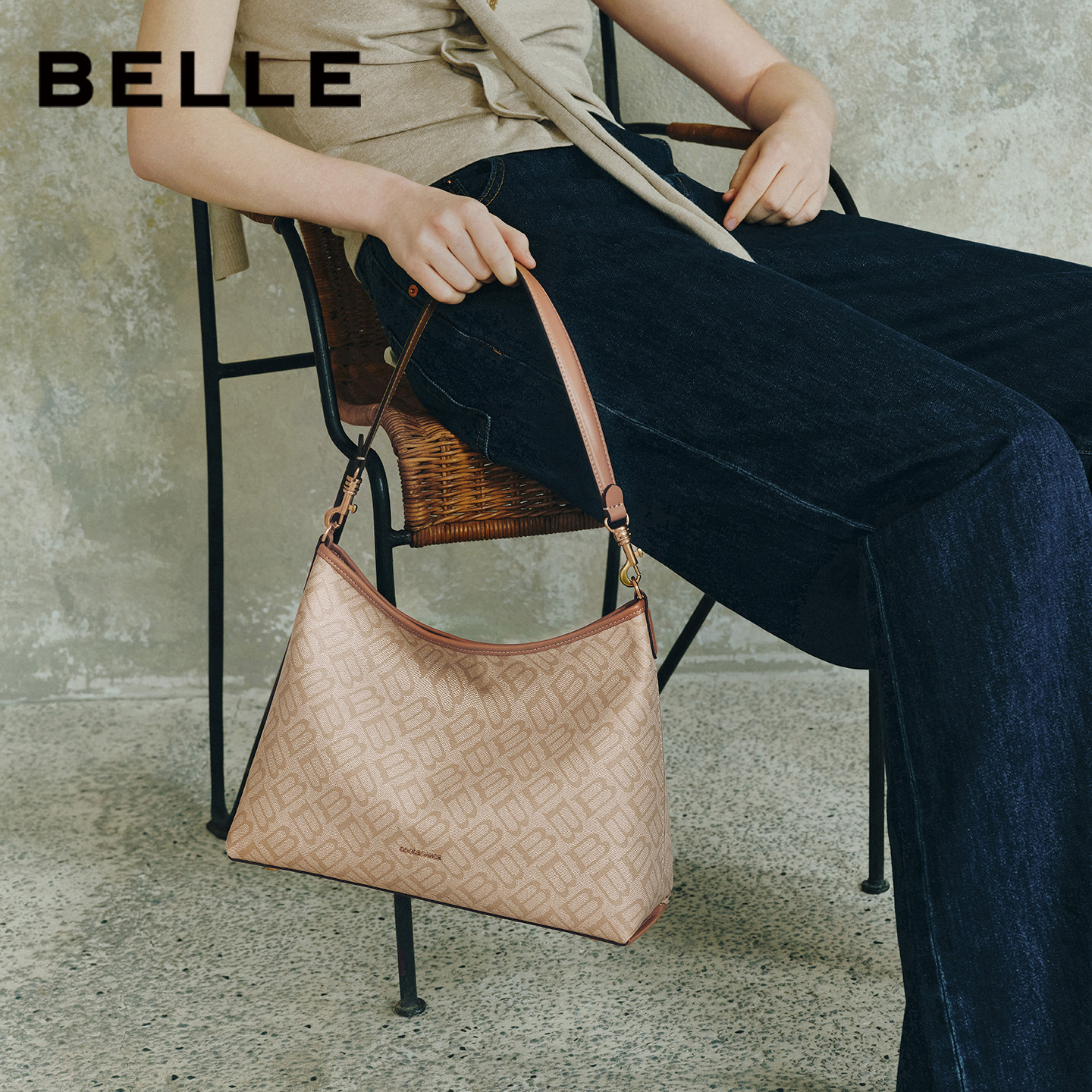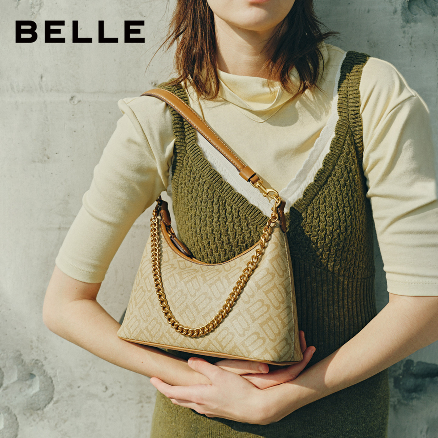 百丽包包女新款新年礼物半月HOBO包腋下大容量斜跨托特饺子包7199