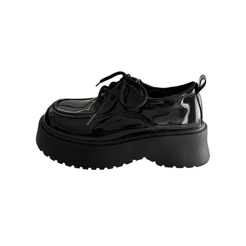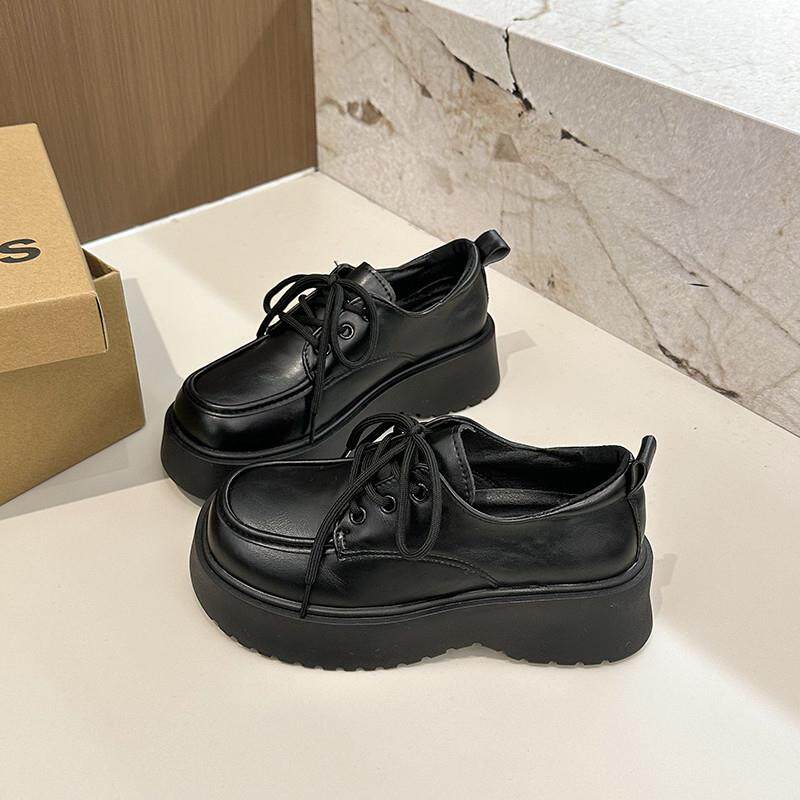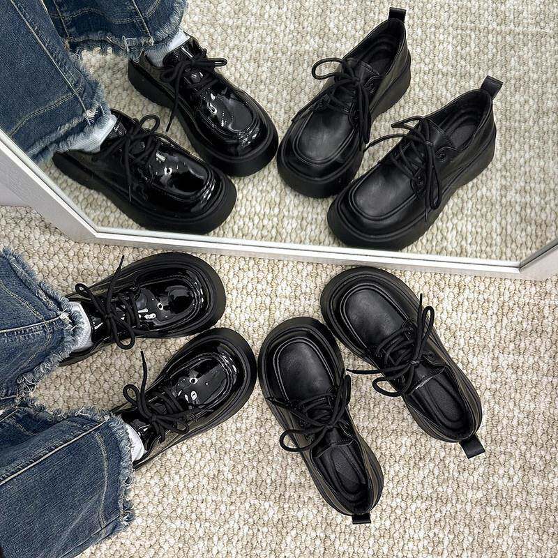 春夏英伦风厚底乐福鞋女2026年百搭黑色系带小皮鞋增高玛丽0301e