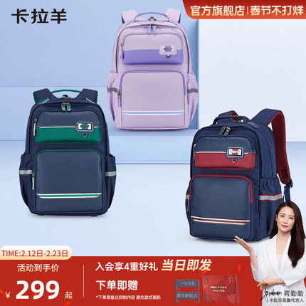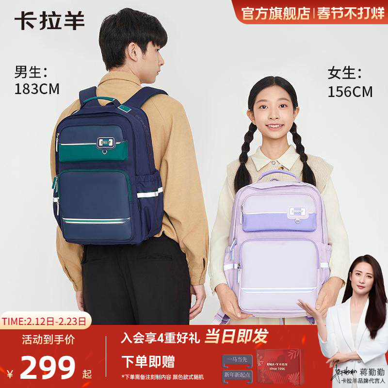 卡拉羊中学生云朵书包减负防下坠双肩背包男5-9年级初中生轻便女