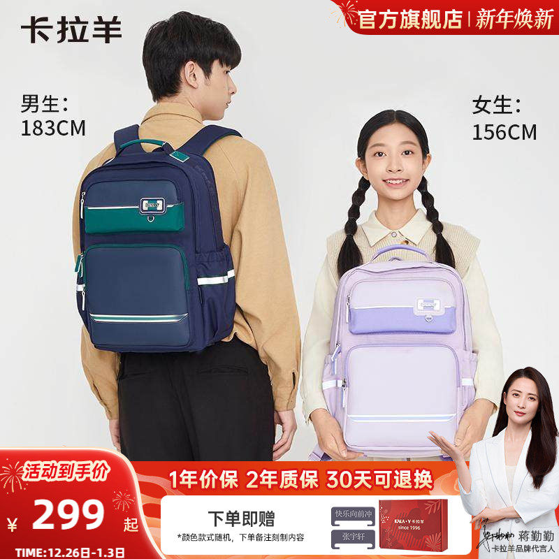 卡拉羊中学生云朵书包减负防下坠大容量双肩包男抑菌轻便背包女