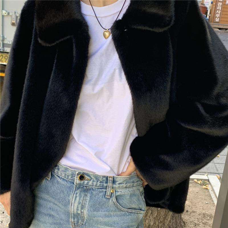 秋冬新款上衣女款环保皮草外套毛毛大衣名媛风韩系女装mo*e