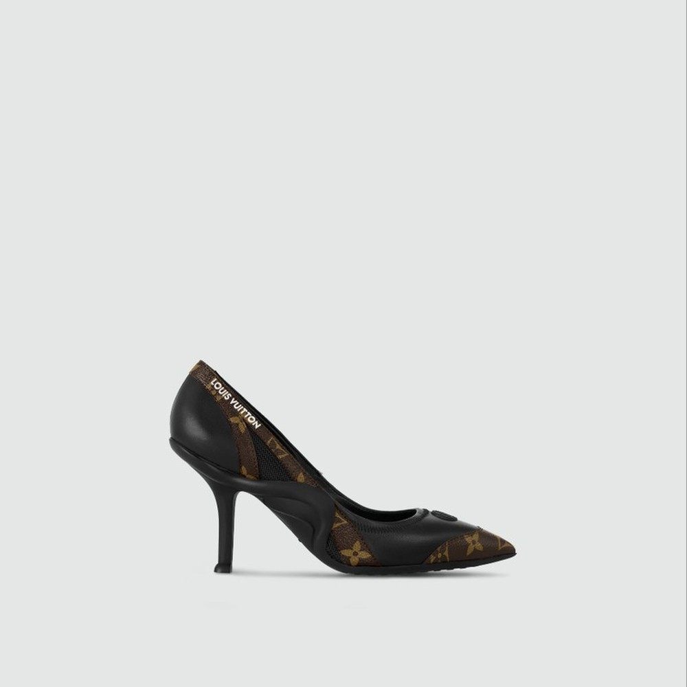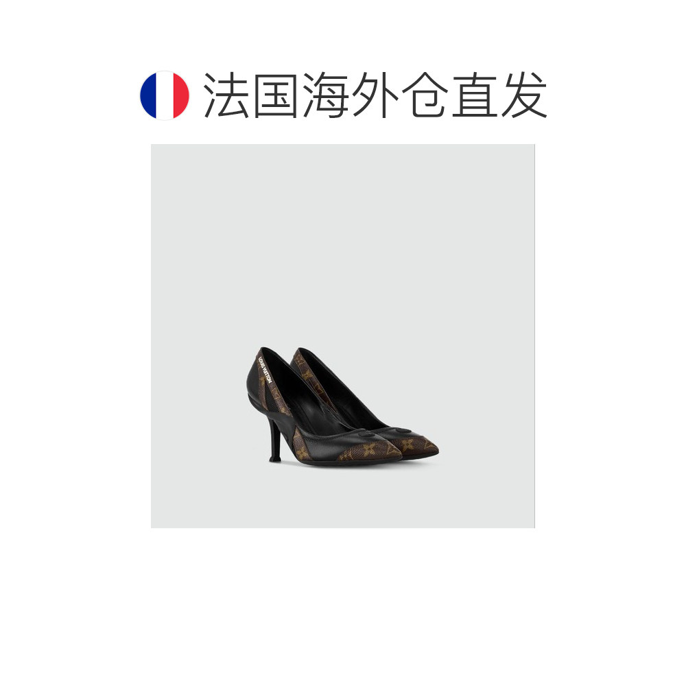 1h可退 欧洲直邮LV/路易威登 女士黑色小羊皮/帆布高跟鞋新款单鞋