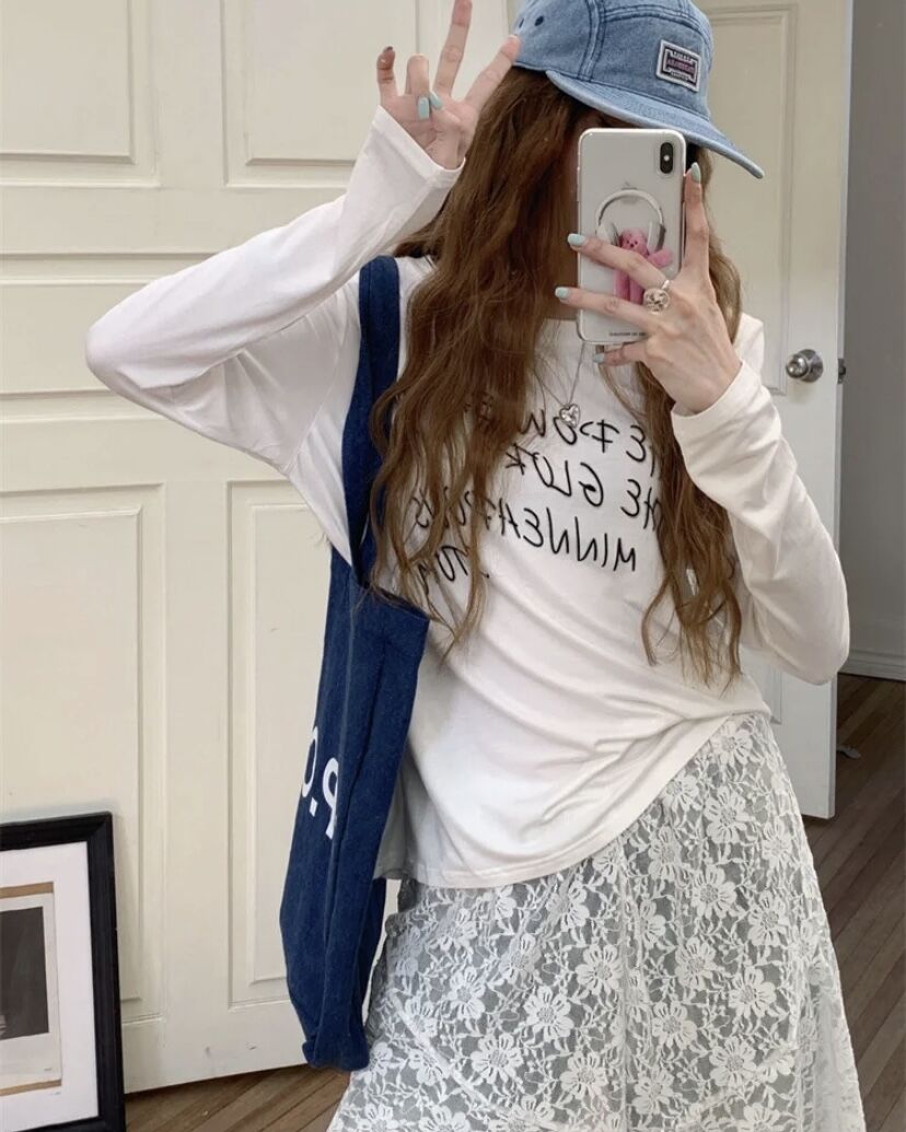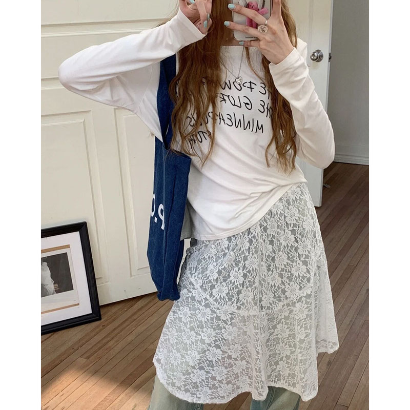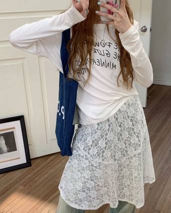 复古叠穿蕾丝花纹半身裙女高腰不规则下摆短裙