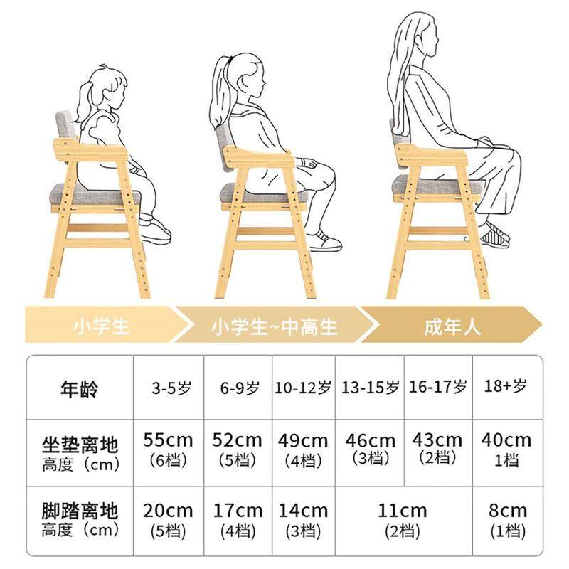 儿童学习椅子实木座椅可升降写字椅学生家用书桌椅可调节宝宝餐椅