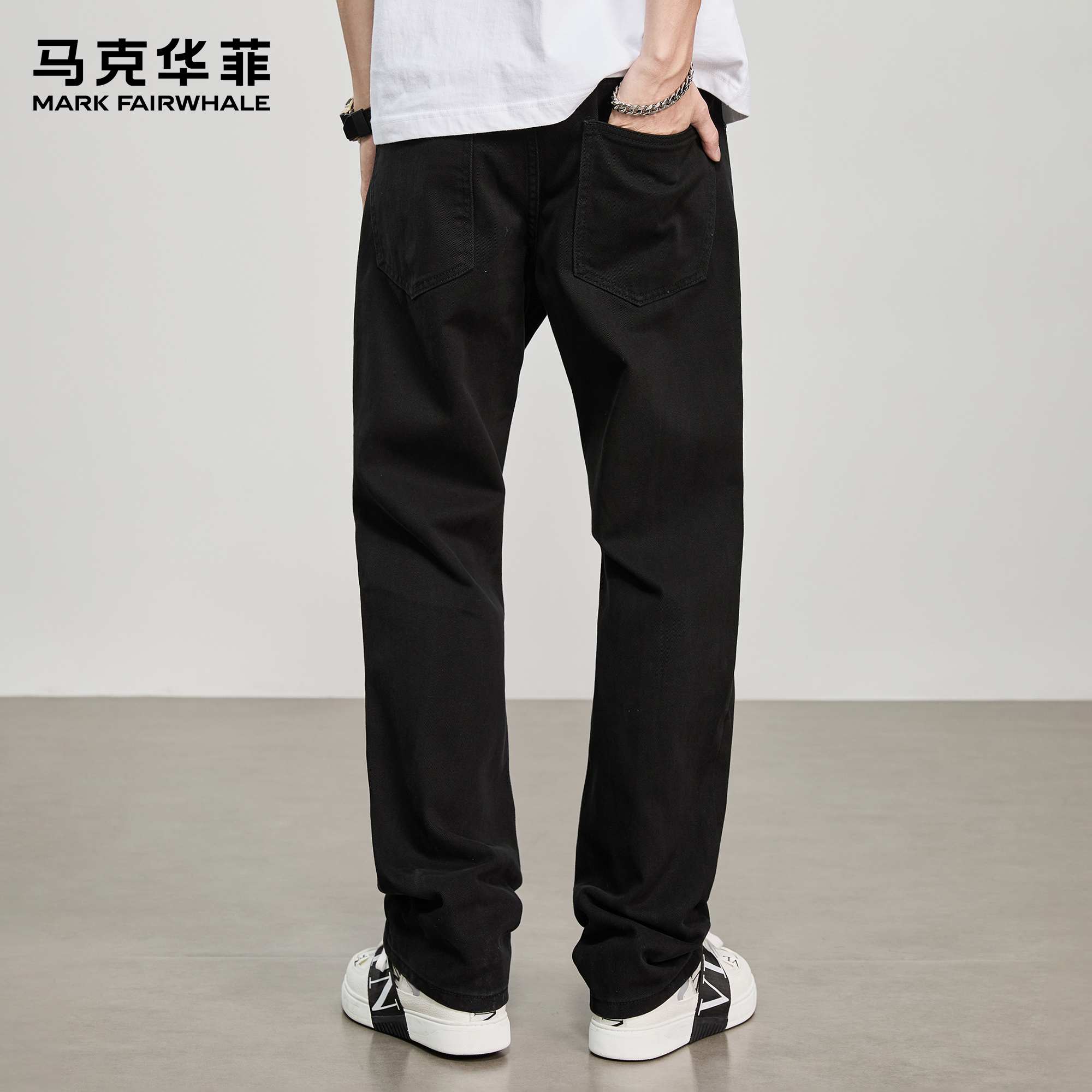 马克华菲牛仔裤裤男夏季潮牌黑色cleanfit高街纯棉简约直筒长裤子
