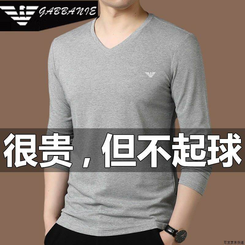 GABBANIE长袖t恤男装纯棉春秋季男士休闲潮牌V领卫衣打底衫新款