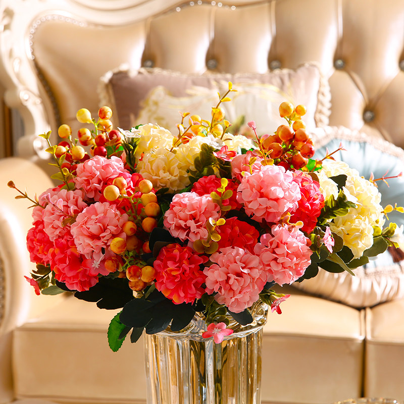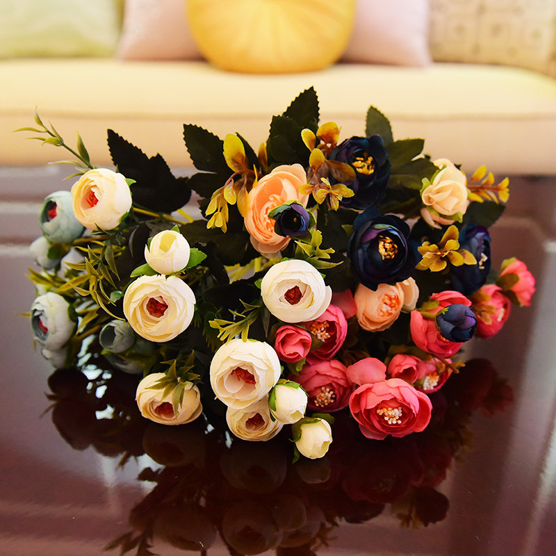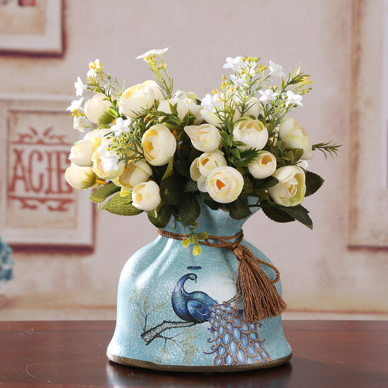 花狐狸 时尚田园高仿真花假花欧式家居客厅装饰花摆设小玫瑰套装
