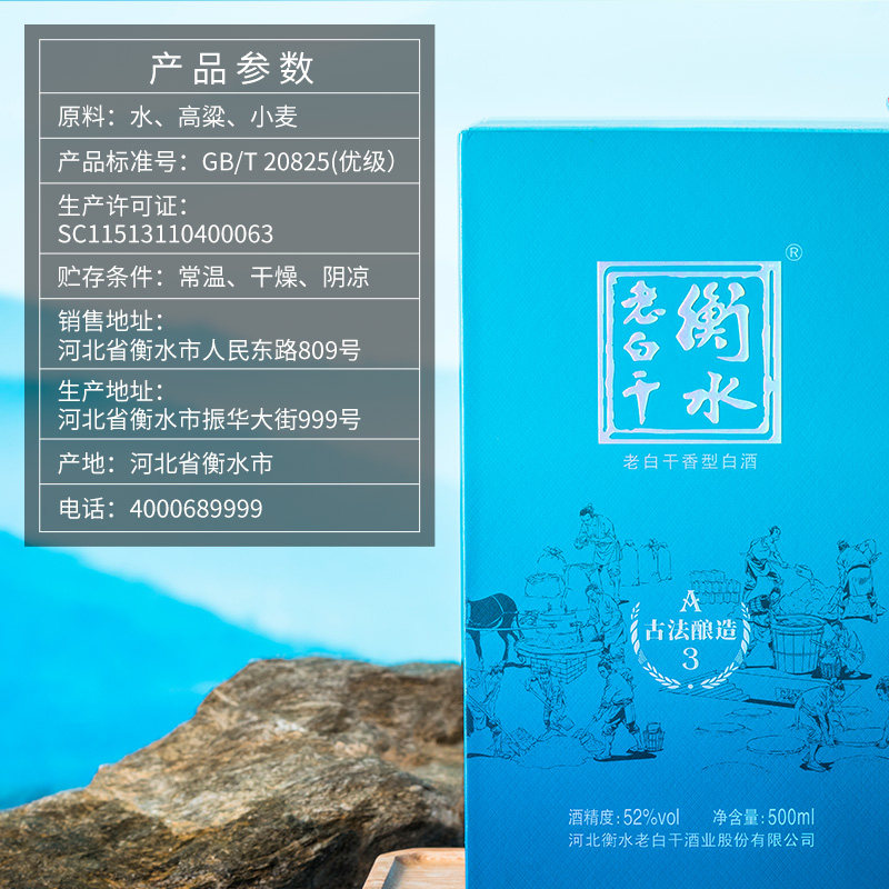 衡水老白干 古法酿造A3酒 52度 500ml 单瓶品鉴 纯粮白酒