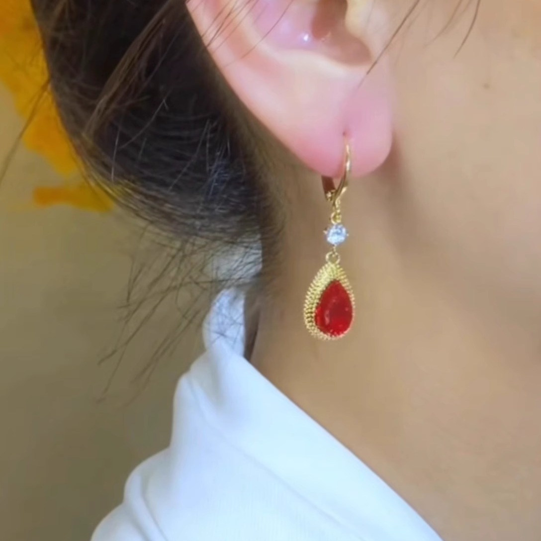 耳环女红色水晶水滴精致榴莲耳扣2025年新款爆款高级感百搭耳饰品
