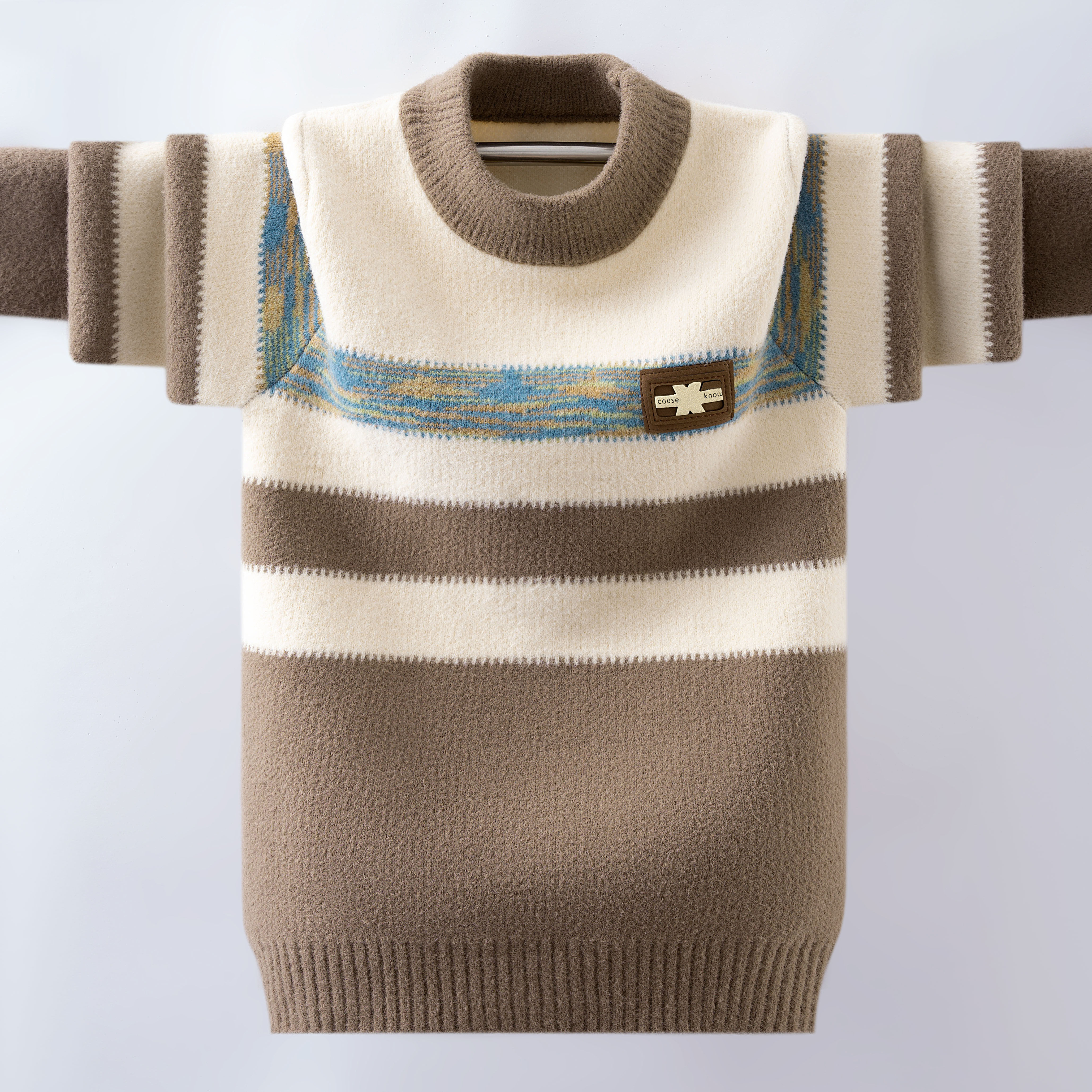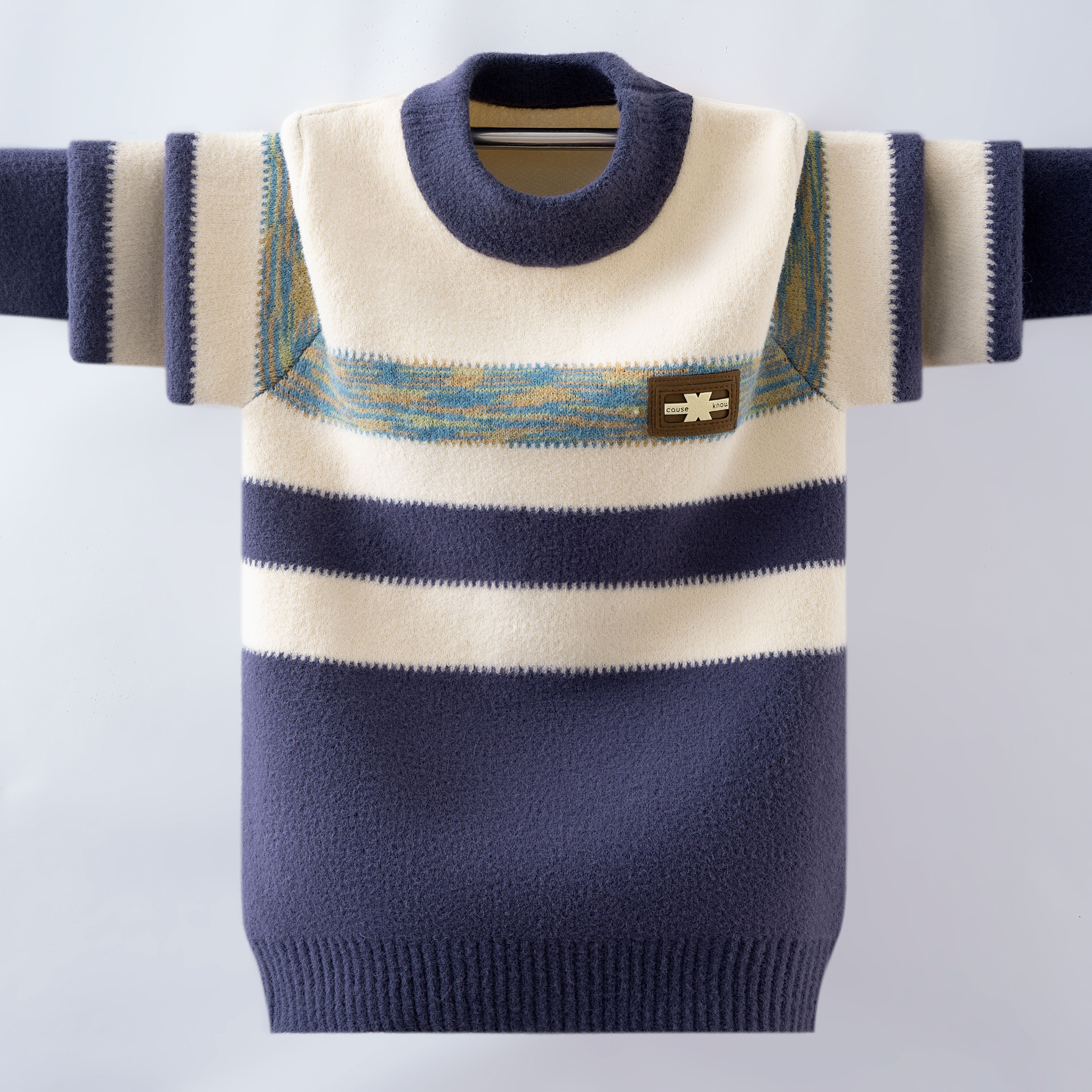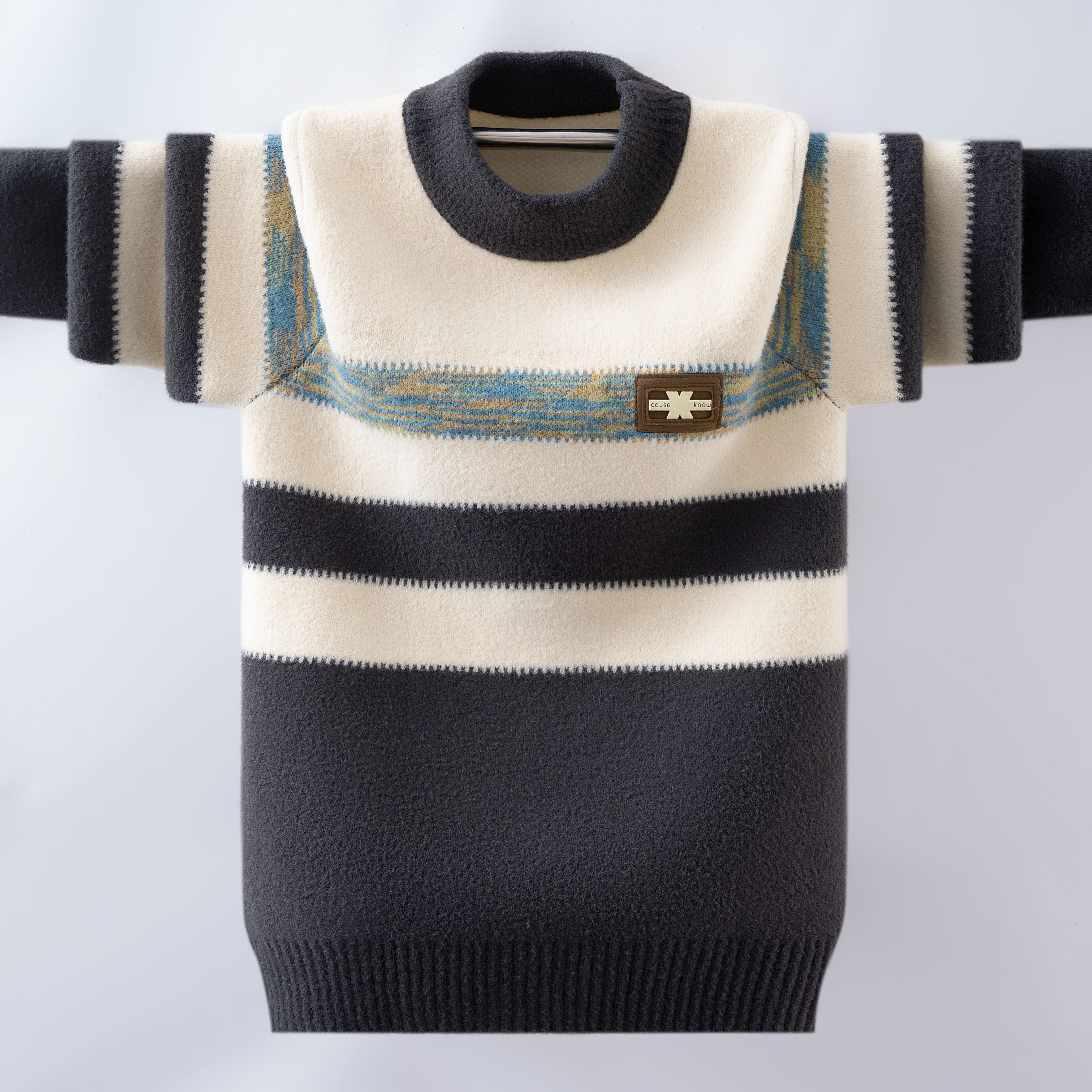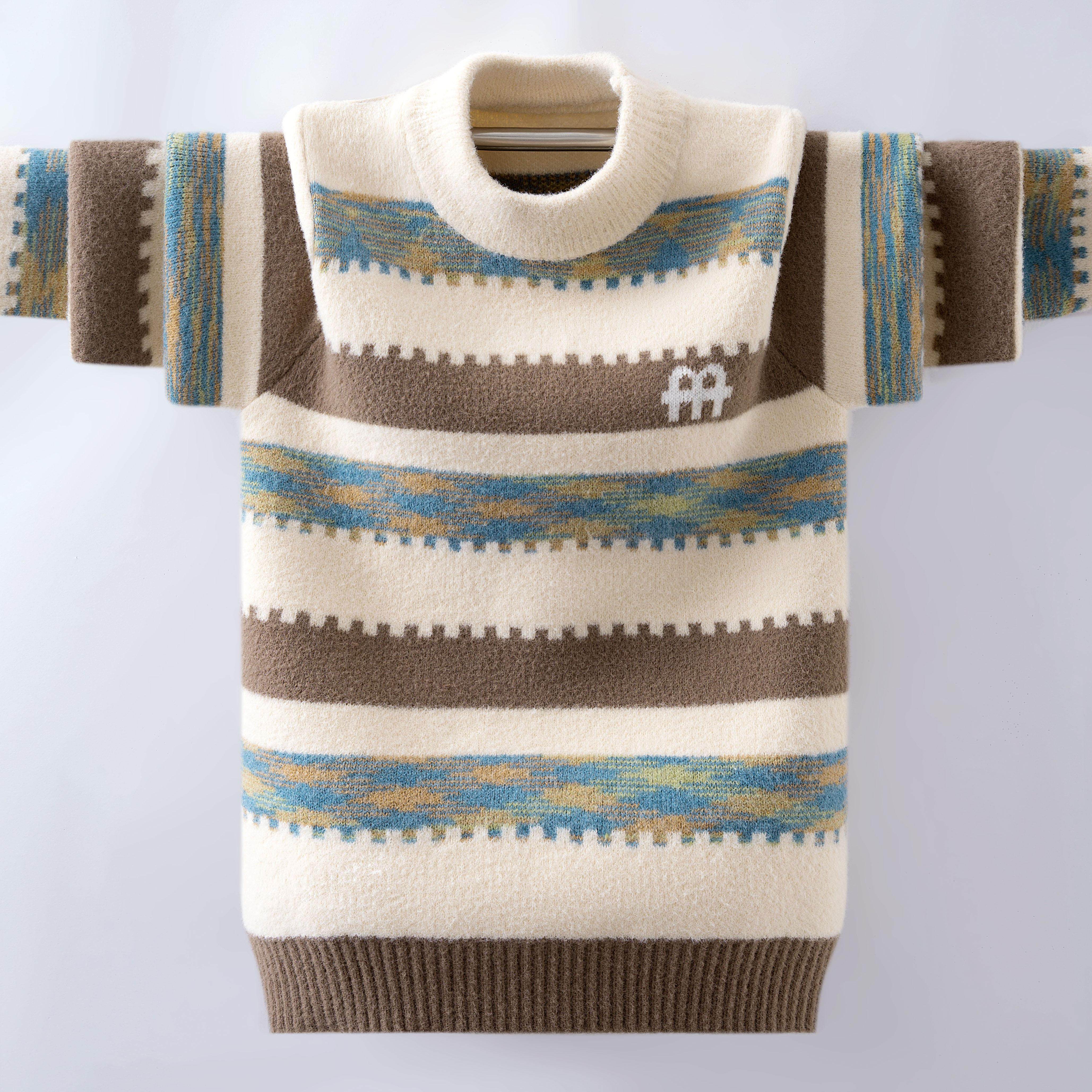 中大童毛衣男童冬季加厚针织衫男孩条纹2025冬装新款加绒保暖衣