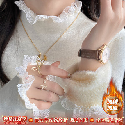半高领蕾丝打底衫女内搭加绒2025秋冬新款加厚毛衣高级感好看上衣