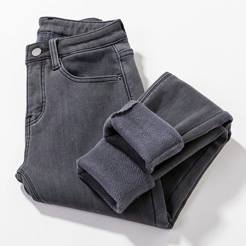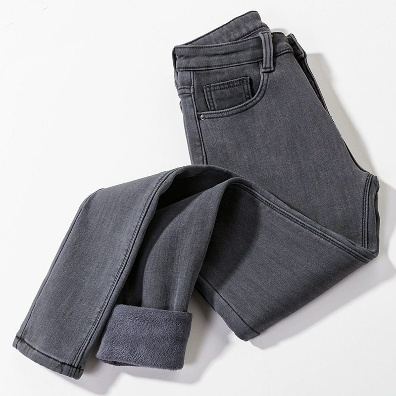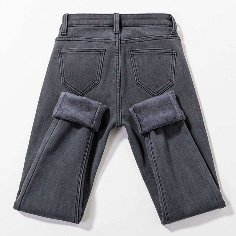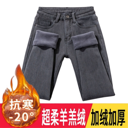 烟灰色加绒牛仔裤女小脚铅笔裤