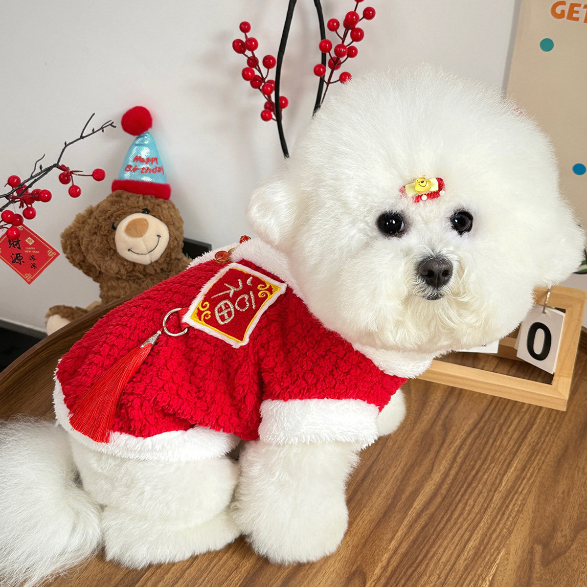 新年款冬装国风刺绣福字加绒保暖宠物狗狗猫咪衣服泰迪毛绒唐装