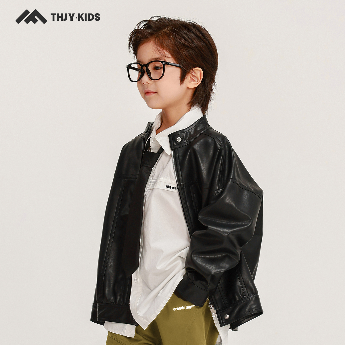 男童皮衣夹克外套2025春秋装新款儿童中大童男孩秋季帅气时髦上衣