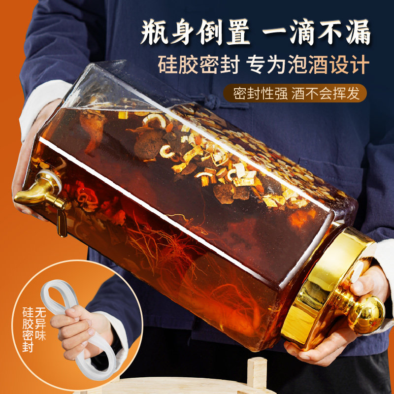 泡酒玻璃瓶专用人参白酒药酒罐酒坛子带龙头长期存酒高档密封容器