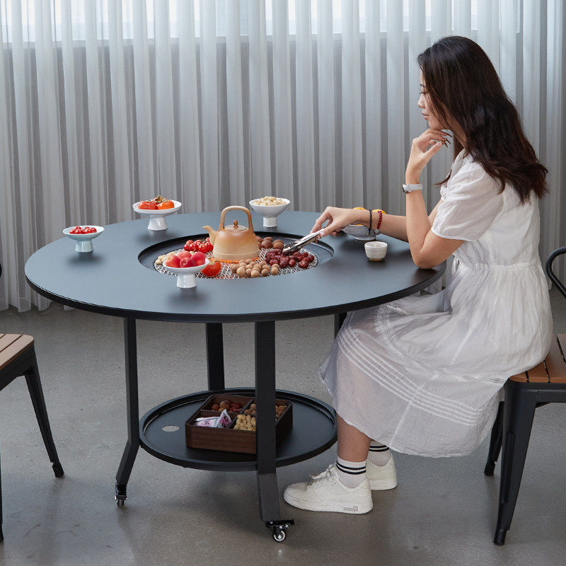 围炉煮茶烤火炉套装室内烧烤桌家用取暖炉户外庭院烧烤炉电炭两用