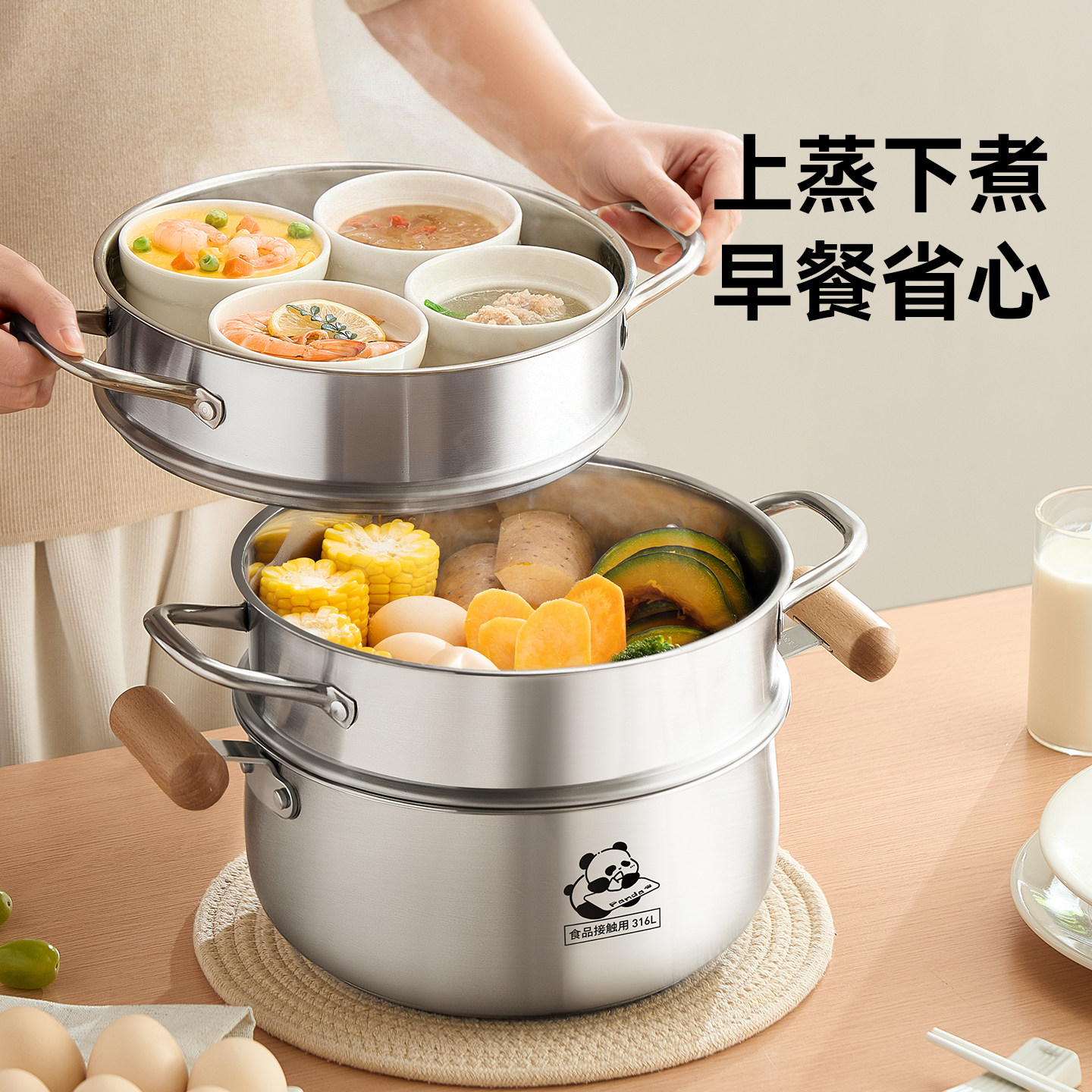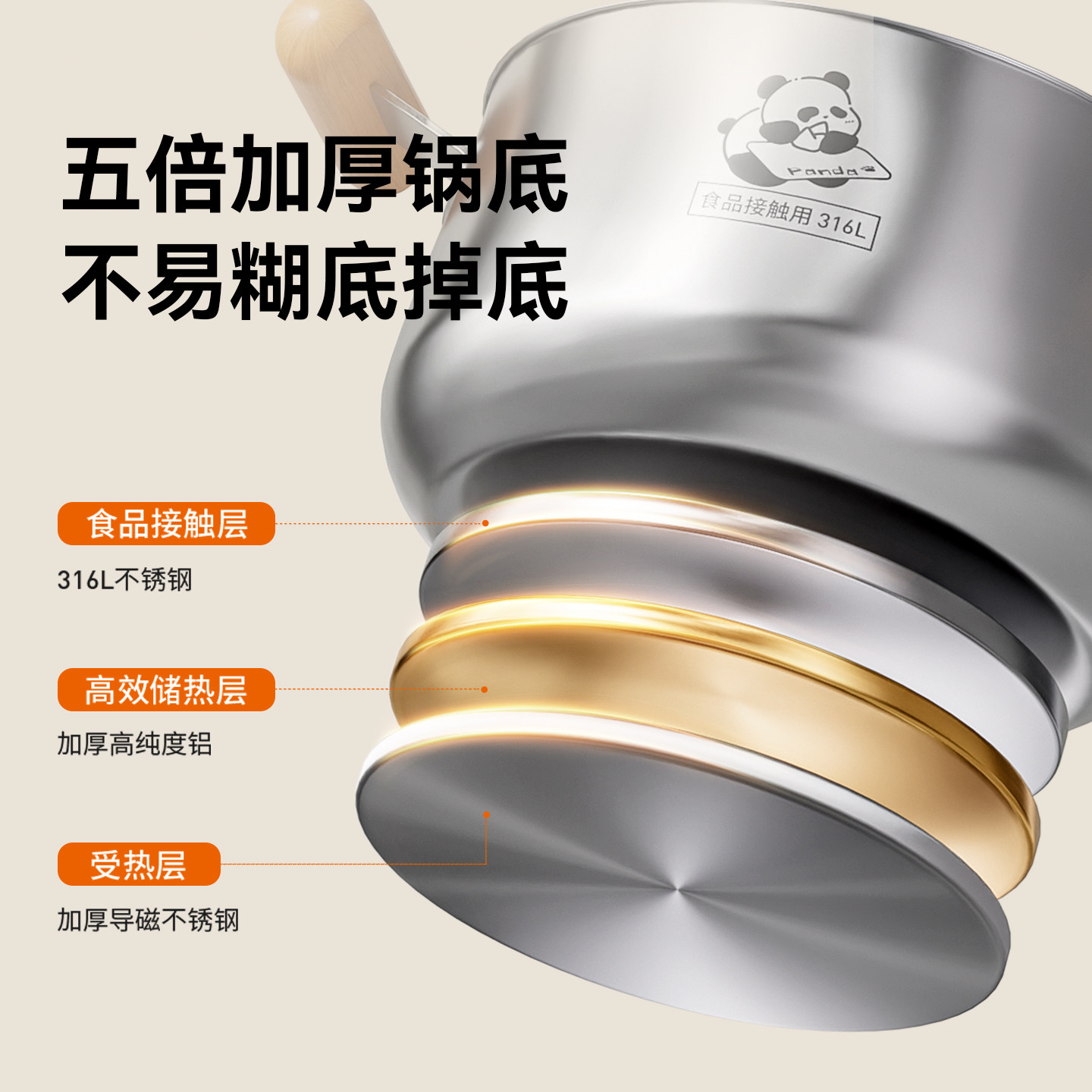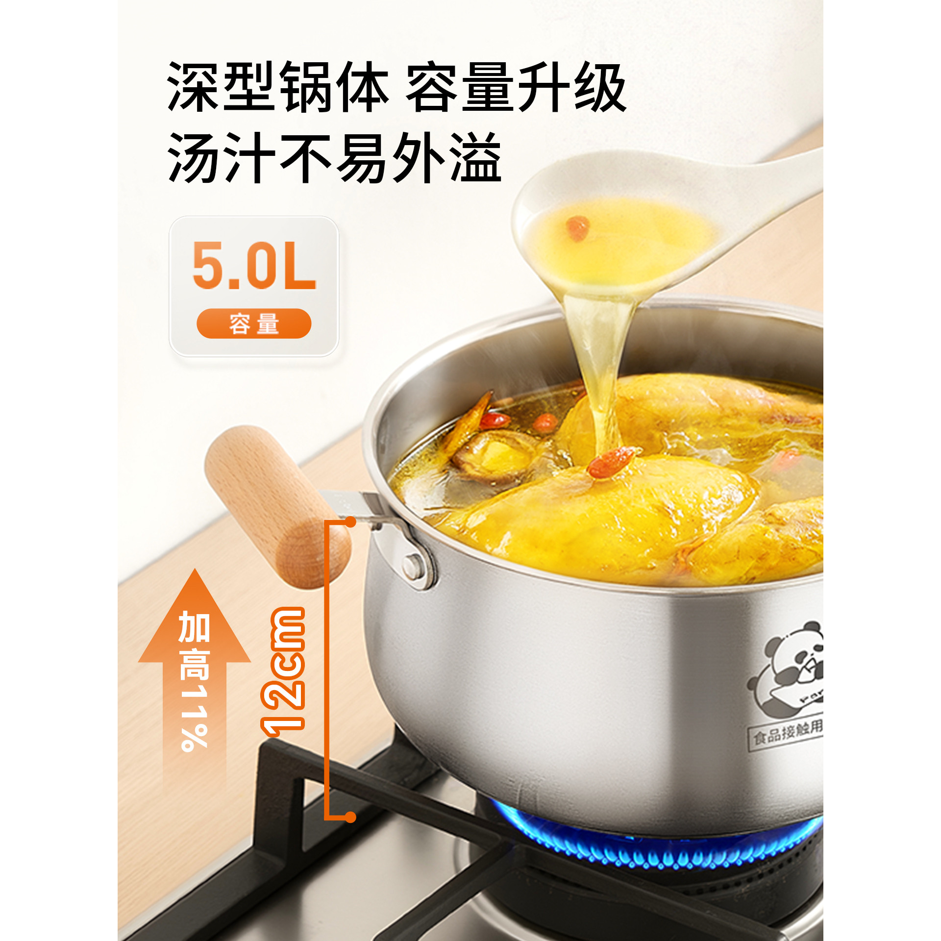 九阳316L不锈钢汤锅家用五倍加厚小煮锅蒸煮锅燃气电磁炉专用炖锅