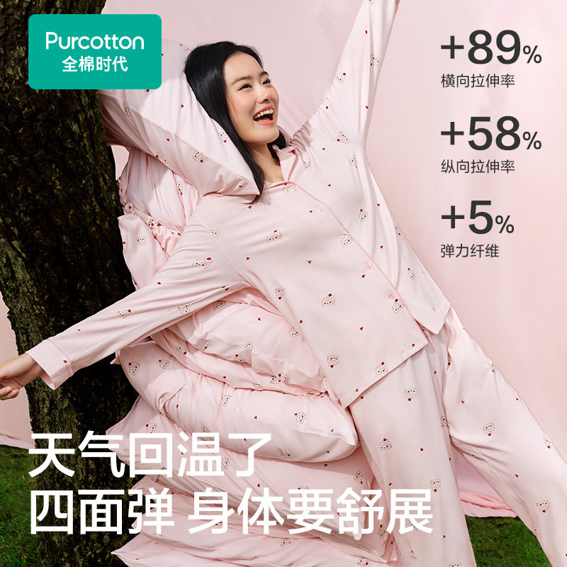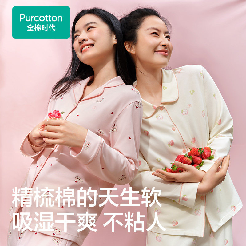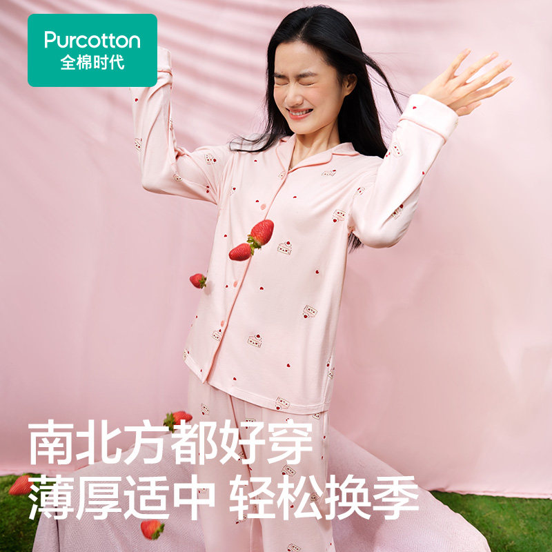 全棉时代睡衣女士印花家居服套装纯棉开衫睡裤长袖长裤26年春秋新