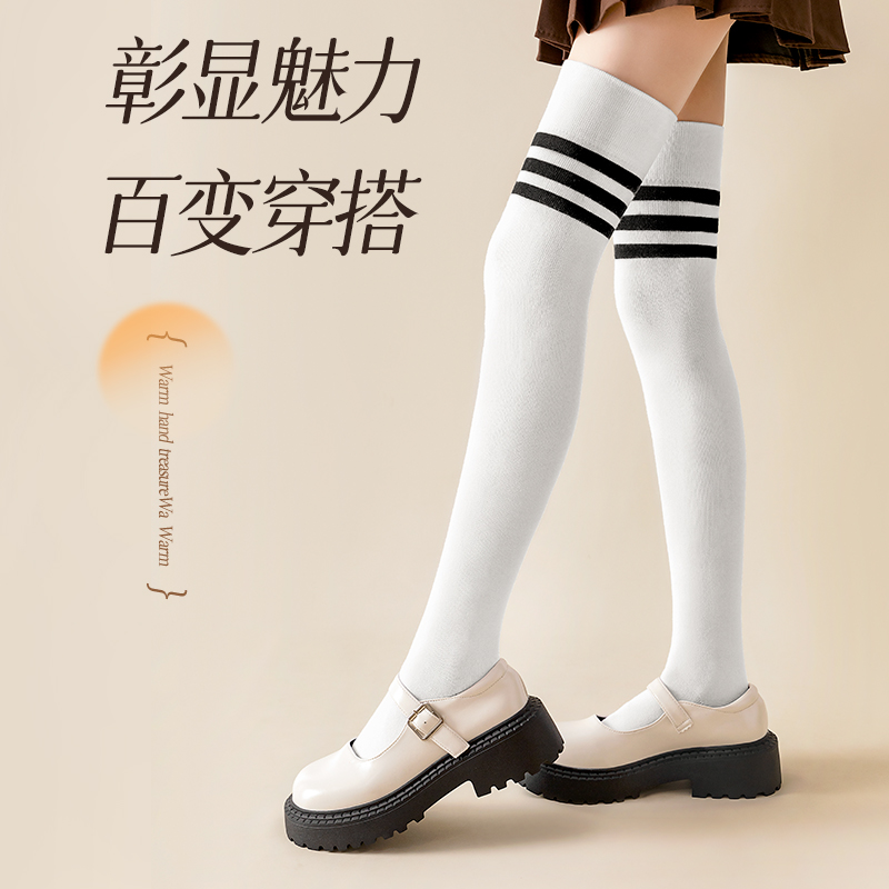 黑色过膝小腿长袜子女童纯棉长筒袜秋冬款学生儿童压力瘦腿配裙子