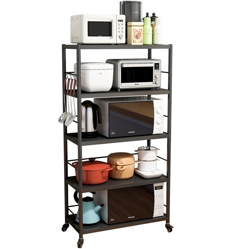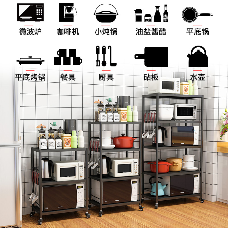 黑色不锈钢厨房置物架落地多层收纳架微波炉架子家用储物货架柜