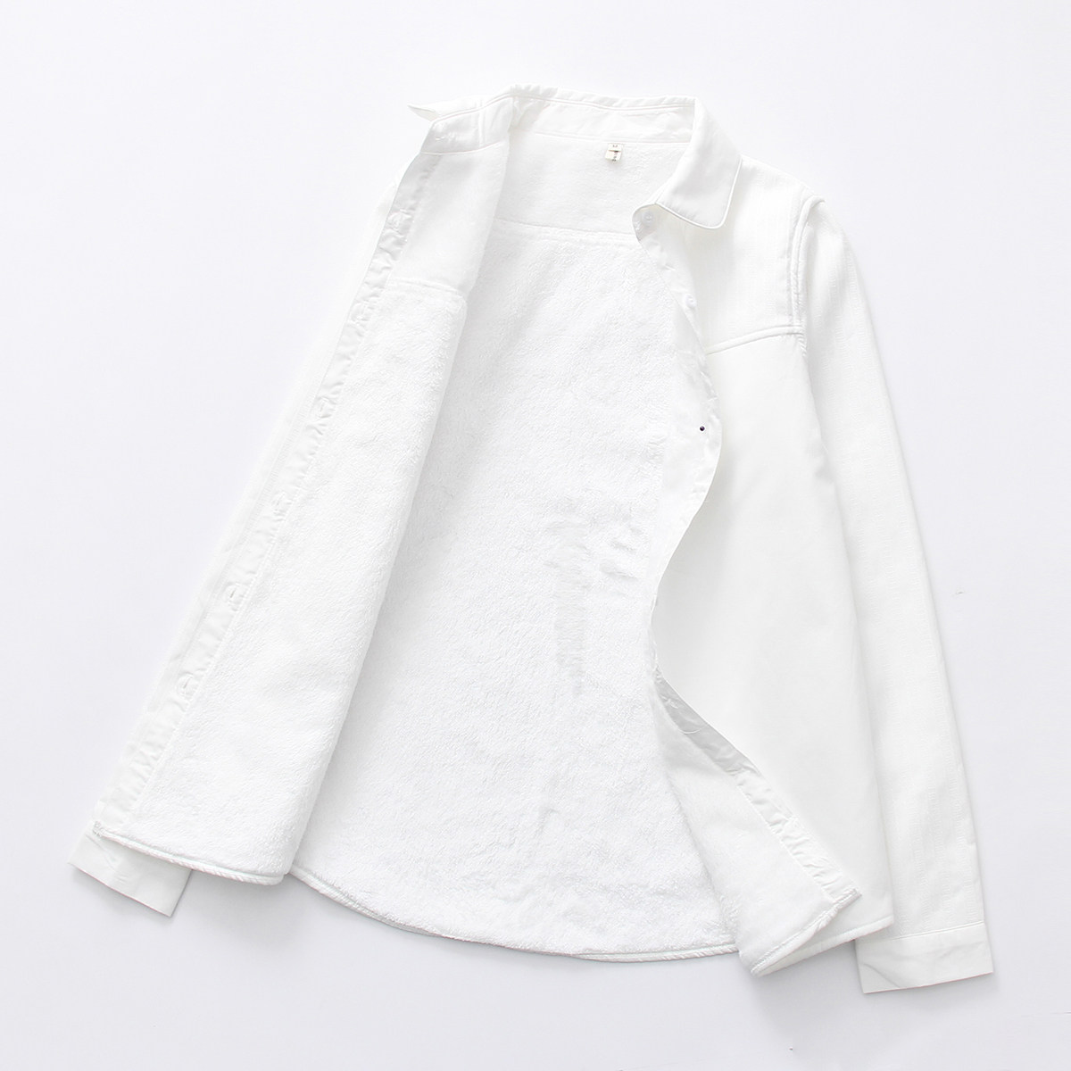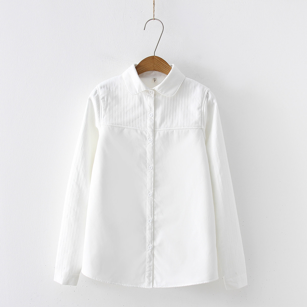 2025秋冬新款娃娃领加绒加厚白色衬衫女长袖学生百搭保暖拼接衬衣