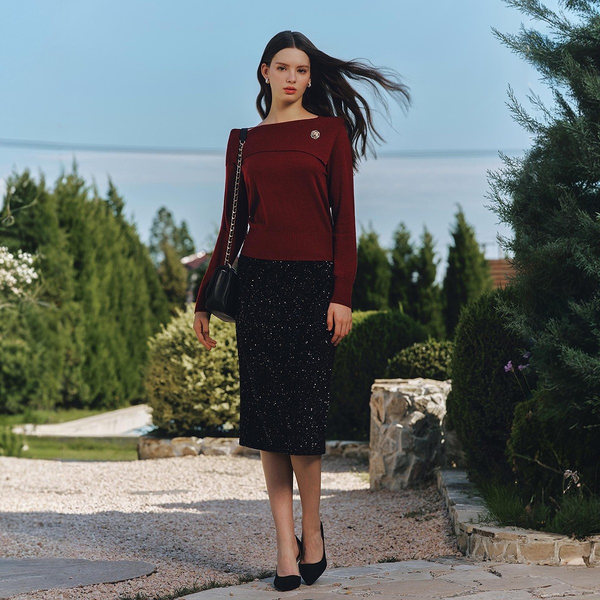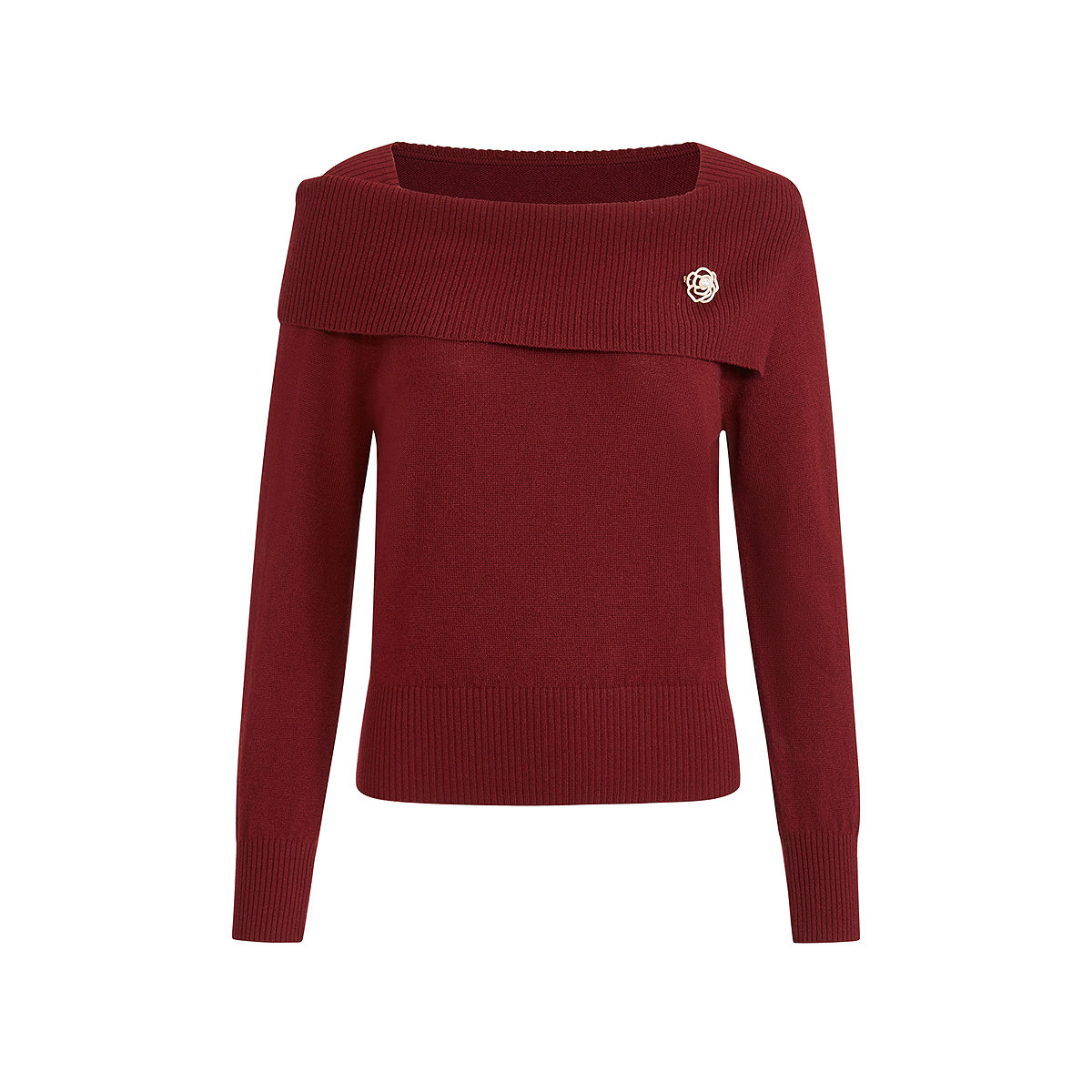 【星光针织】珂莱蒂尔2025秋季新款气质一字领浪漫名媛绵羊毛衫