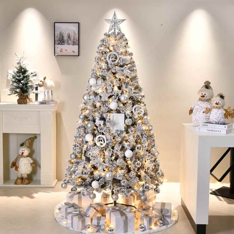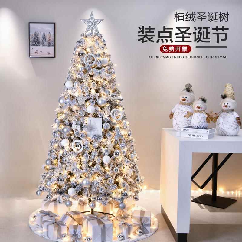 白色圣诞树家用套餐1.5/1.8/2.1/3米4加密植绒落雪圣诞节场景装饰