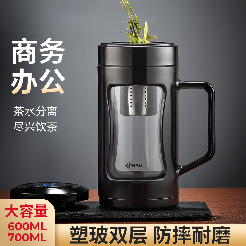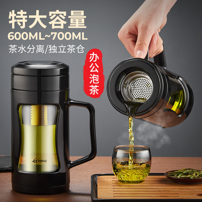 捷安玺高硼硅玻璃杯带把手男士办公泡茶杯水杯大容量茶水分离杯子