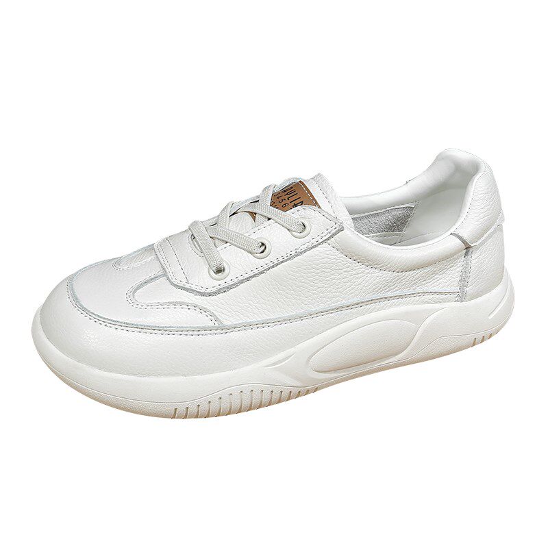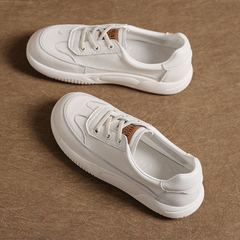 头层牛皮浅口单鞋女复古2025新款小白鞋透气复古运动百搭休闲女鞋