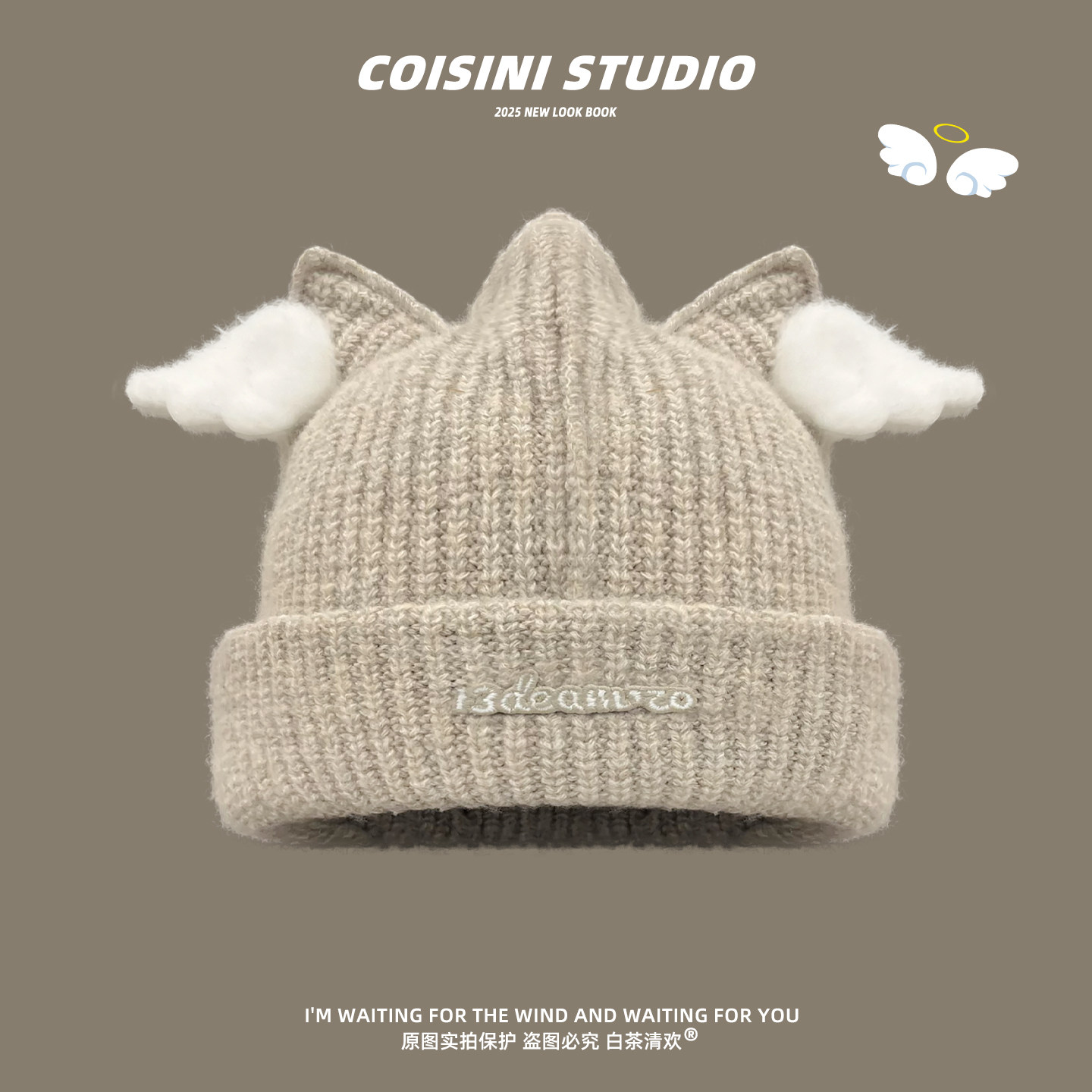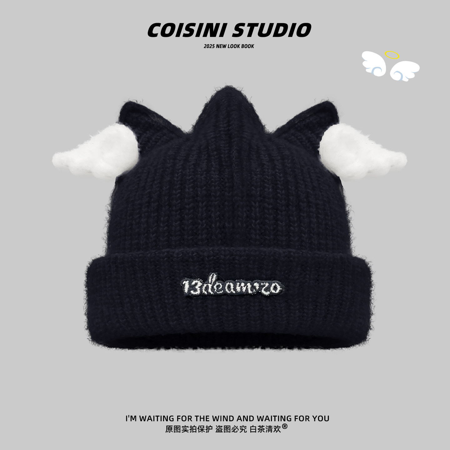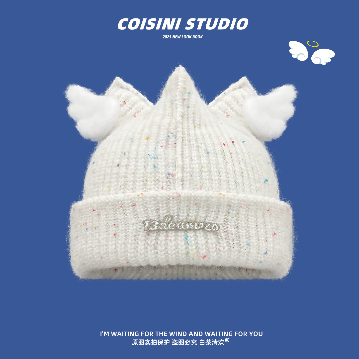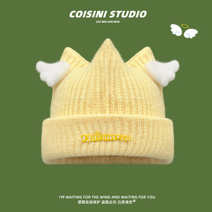 日系可爱小天使翅膀毛线帽子女冬季加厚保暖甜美针织帽百搭护耳帽