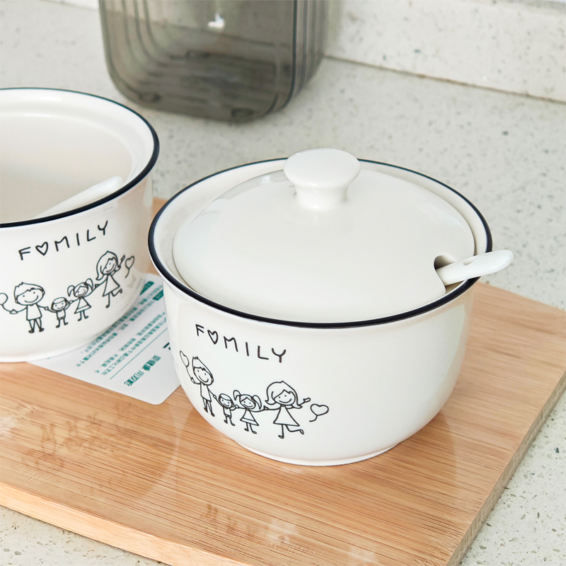 雅诚德陶瓷调料盒创意釉下彩盐佐料调料罐厨房调味罐5英寸带勺盖