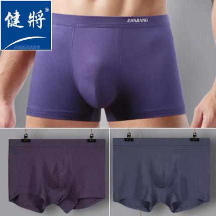 健将男士内裤60支莫代尔舒适面料中腰宽边弹性透气纯色男式平角裤