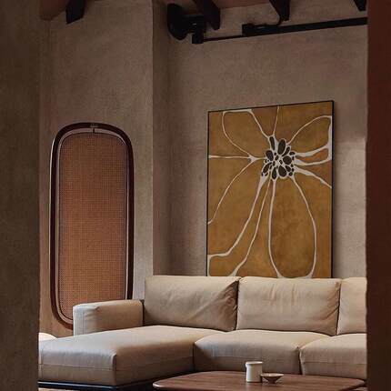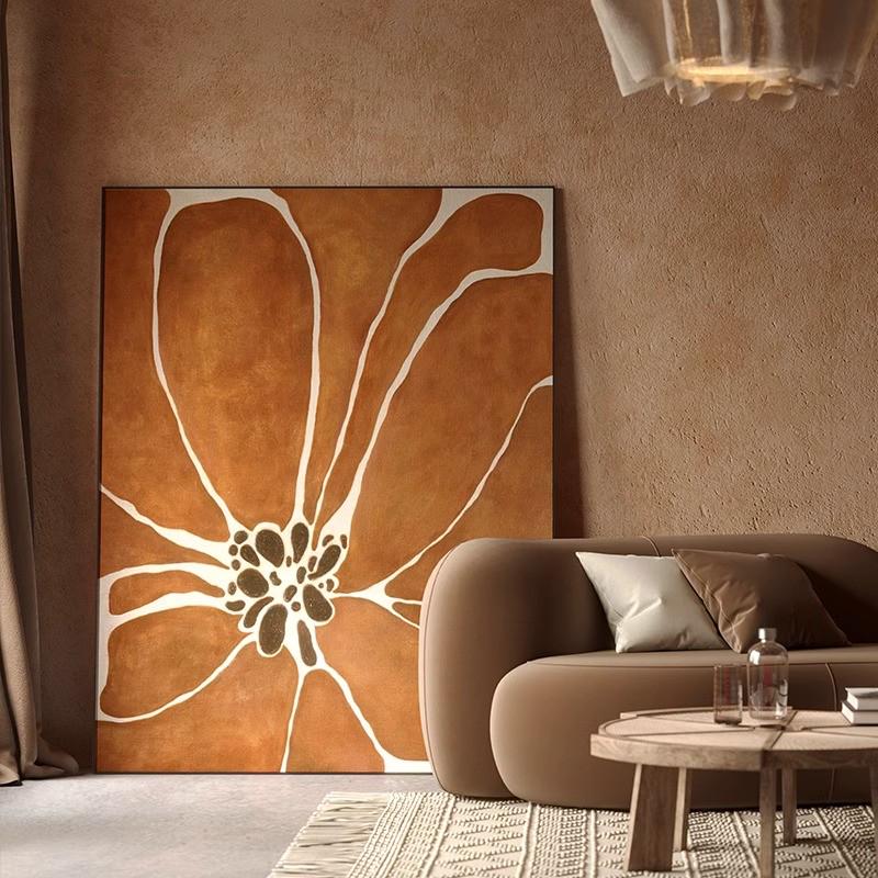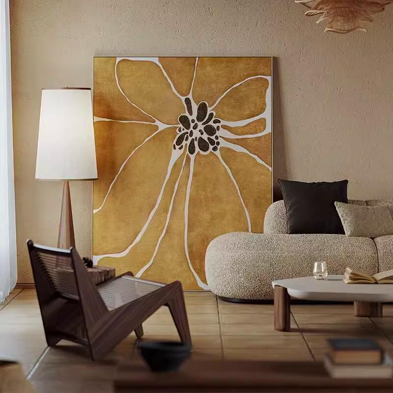 侘寂风客厅装饰画现代简约沙发背景墙落地挂画入户玄关壁画抽象花
