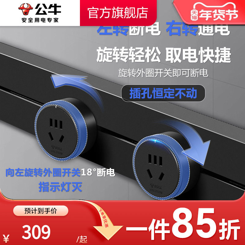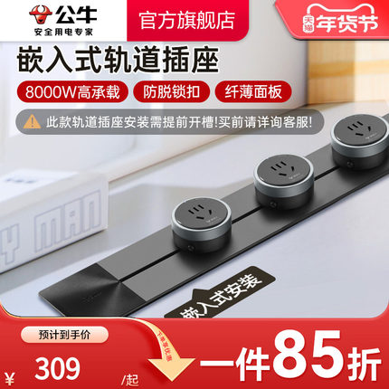 公牛可移动嵌入式轨道插座导轨厨房客厅卧室无线暗装家用插排