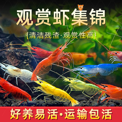 黑壳虾鲜活观赏水晶虾好养耐活淡水冷水大号除藻樱花虾鱼苗观赏鱼